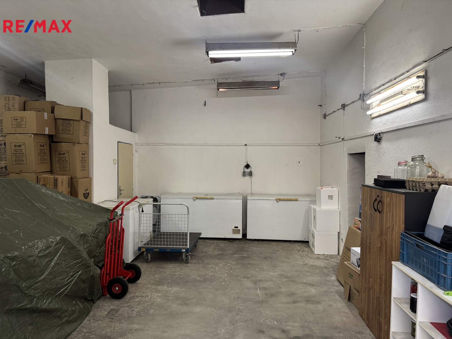 Součástí domu je zastřešená dílna/sklad , vytápěné prostory kanceláří a dalších skladů.