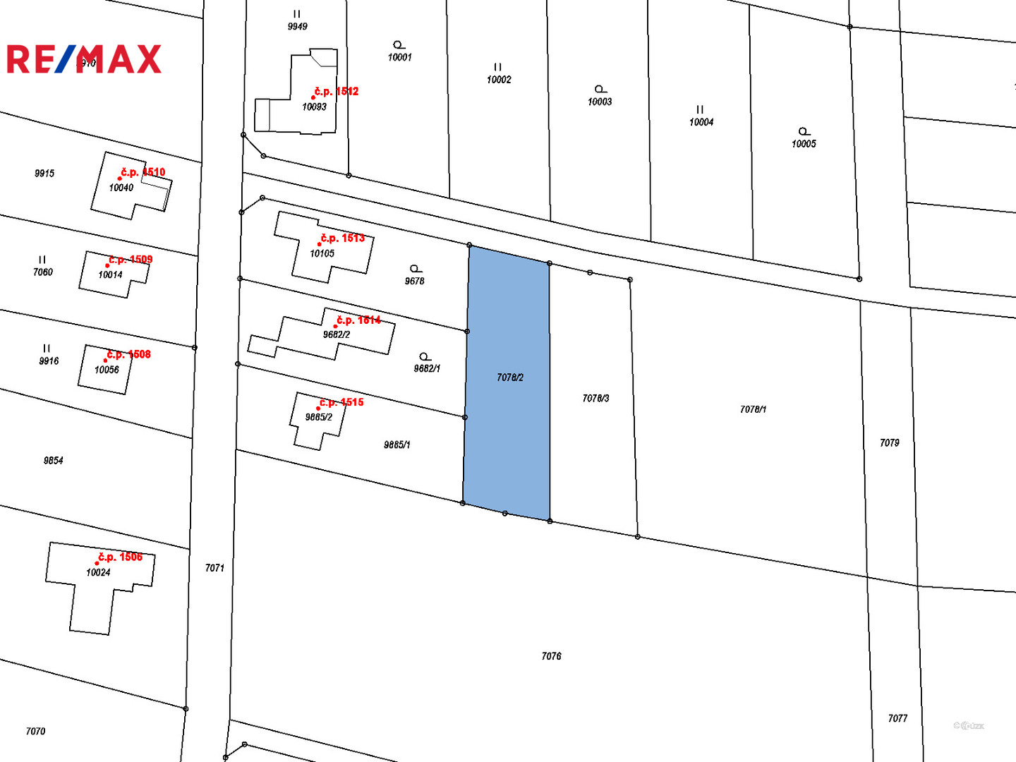 Velká výměra 1040 m² poskytující dostatek místa pro dům i zahradu.