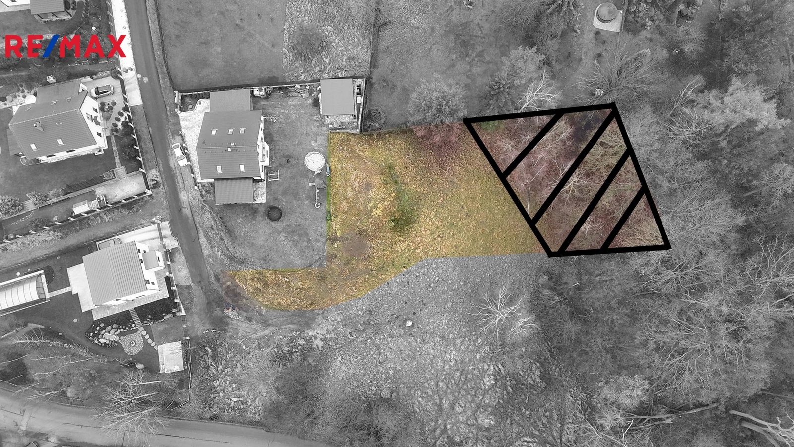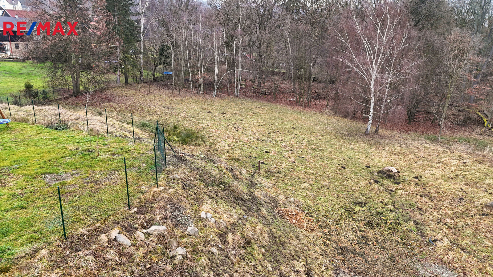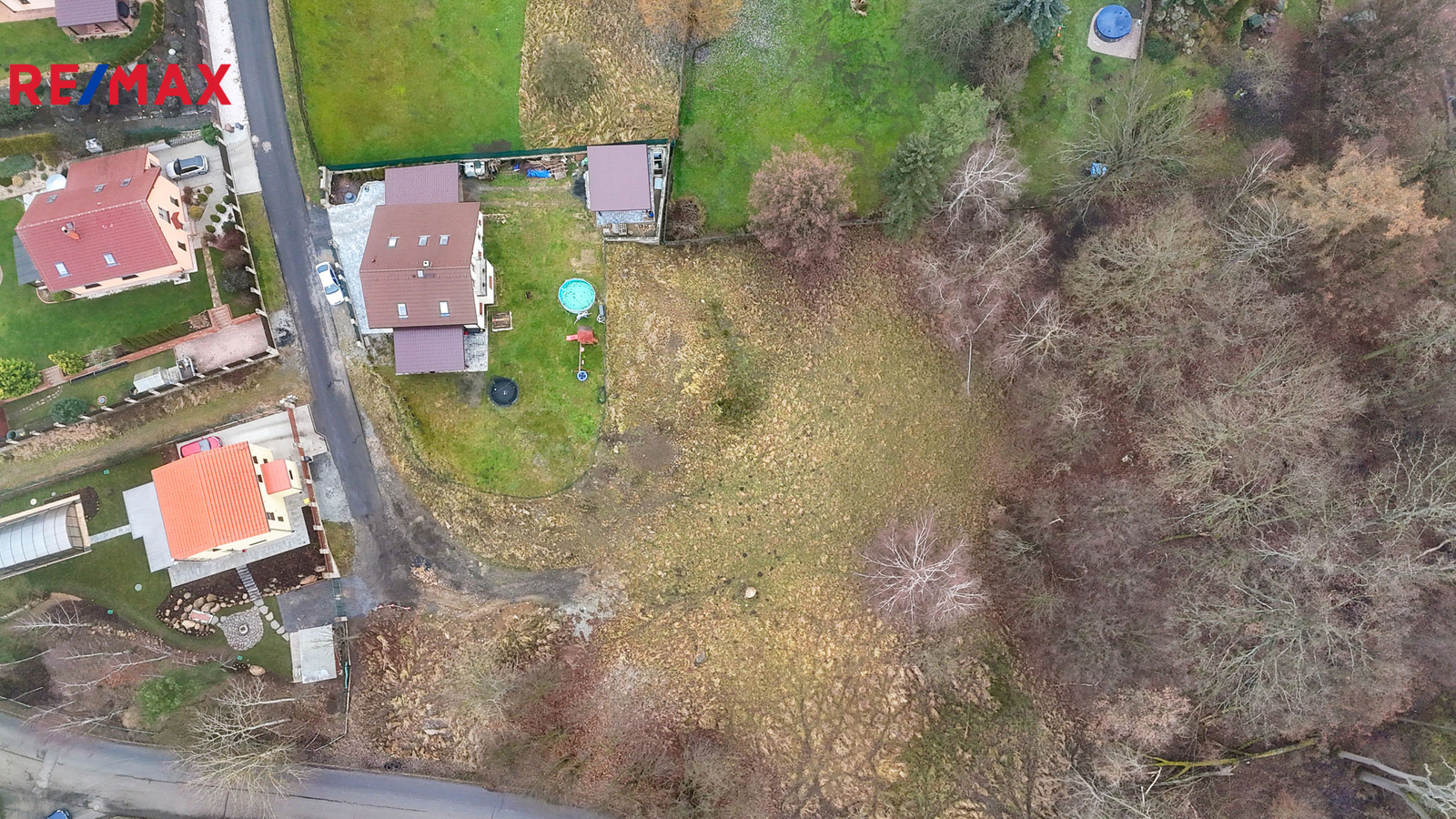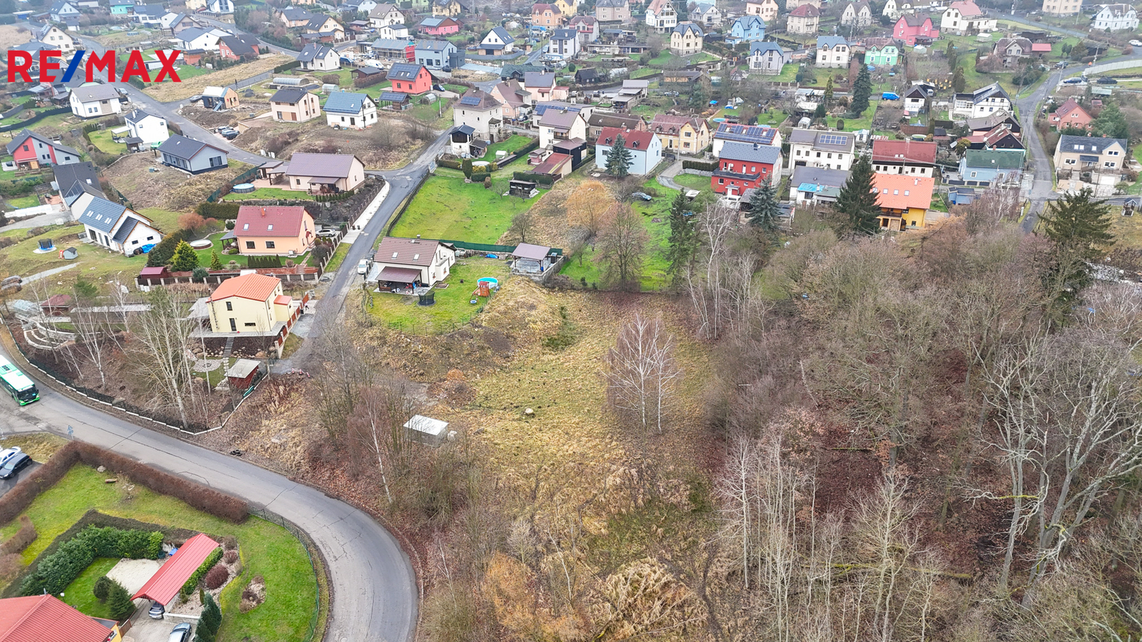 Hlavní pozemek o rozloze 1 103 m² je dle územního plánu veden jako plocha BI – bydlení individuální, určená pro výstavbu samostatně stojícího rodinného domu venkovského či příměstského charakteru. Přípustná je výstavba rodinného domu obsahujícího maximálně dvě bytové jednotky, a to pod společným uzavřením. Na fotografii je označeno ochranné pásmo lesa. V této oblasti není možné vystavět rodinný dům.