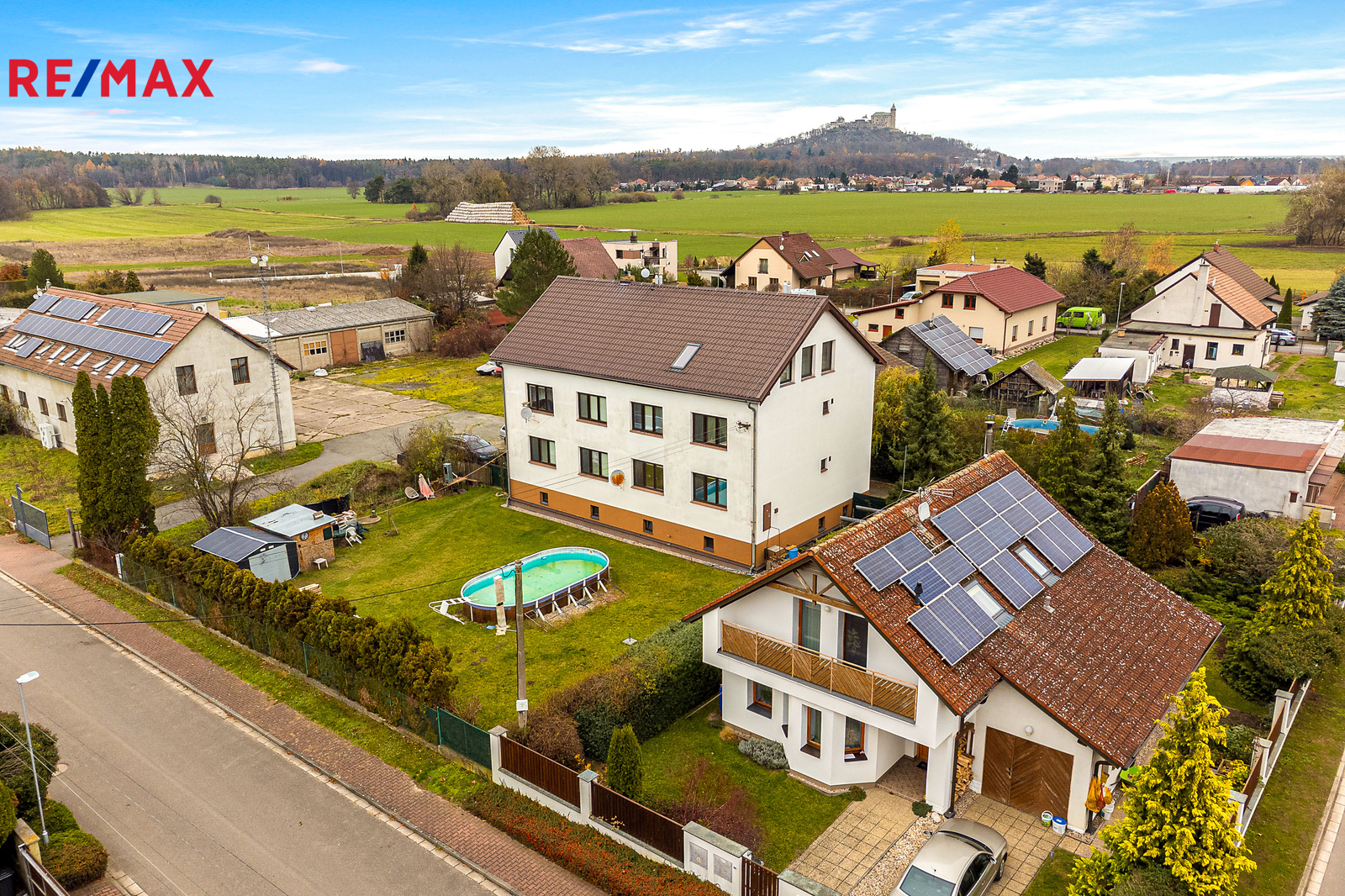Z domu je vidět Kunětická hora, která tvoří atraktivní dominantu celého okolí.
