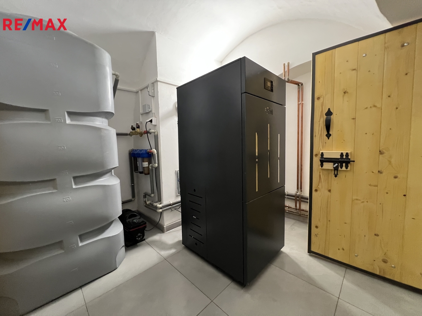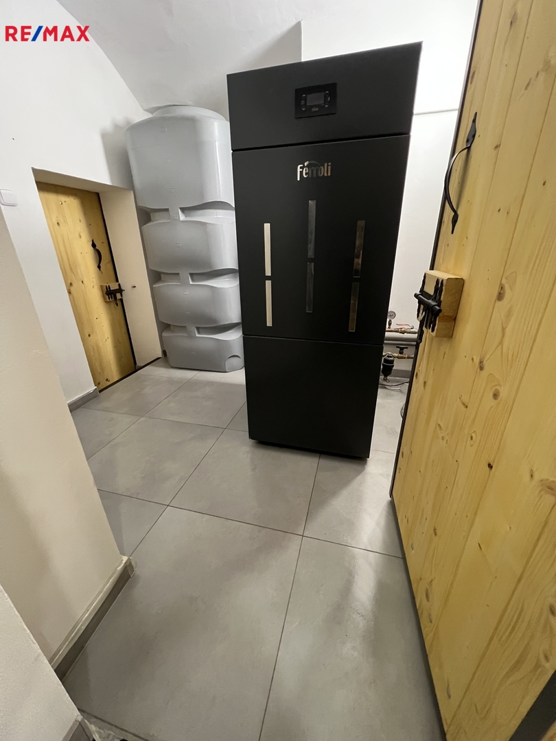 kotelna s domácí vodárnou (1 000 l) a skladem na pelety