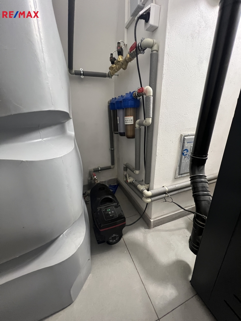 Vytápění zajišťuje kotel na pelety, ohřev vody úsporný elektrický bojler. Odpady jsou svedeny do septiku s přepadem, voda je čerpána z místního pramene. Kotel i bojler lze ovládat pohodlně na dálku přes Wi-Fi.