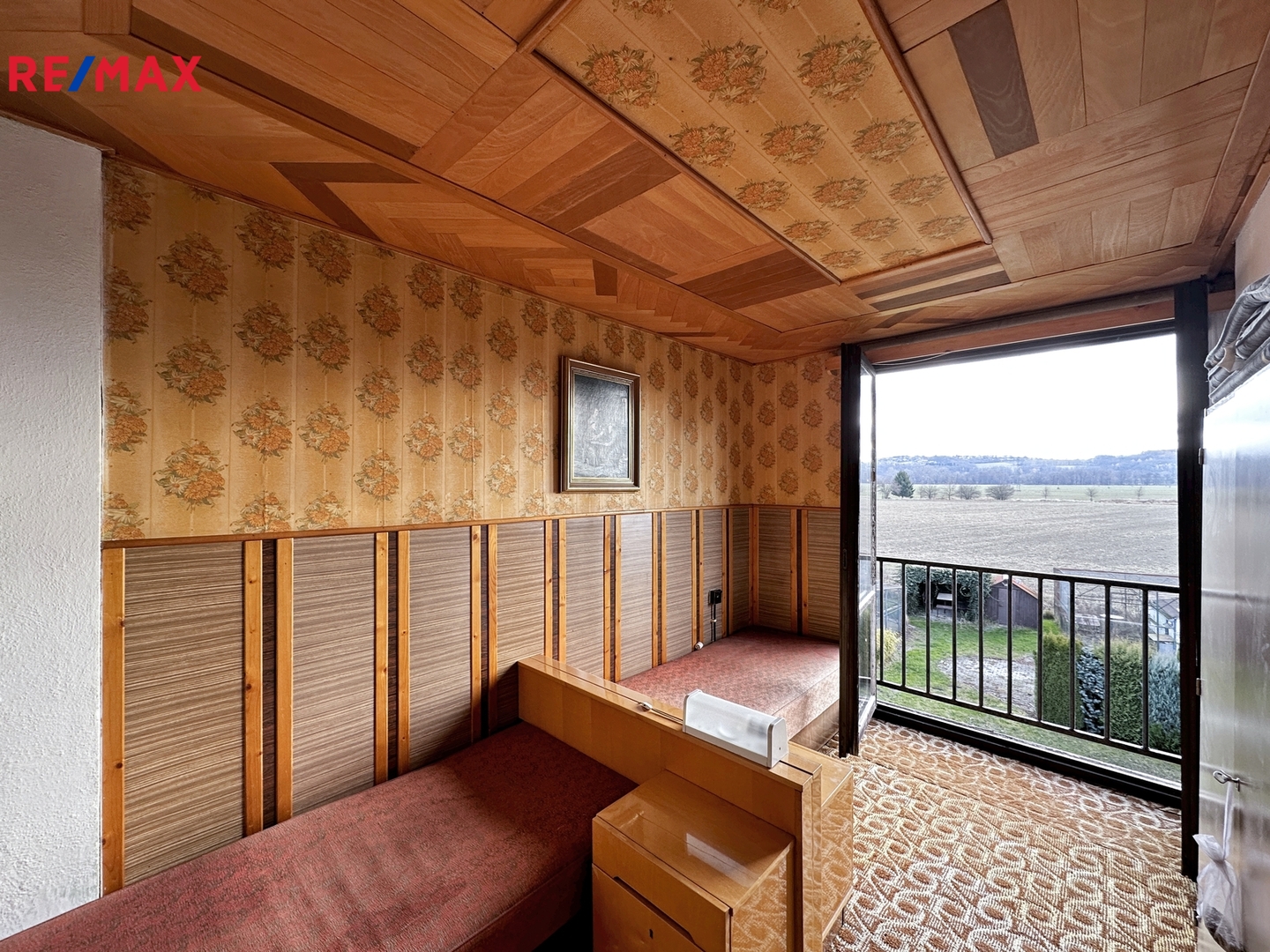 • Patro: útulná ložnice s balkonem, odkud je příjemný výhled do zeleně.