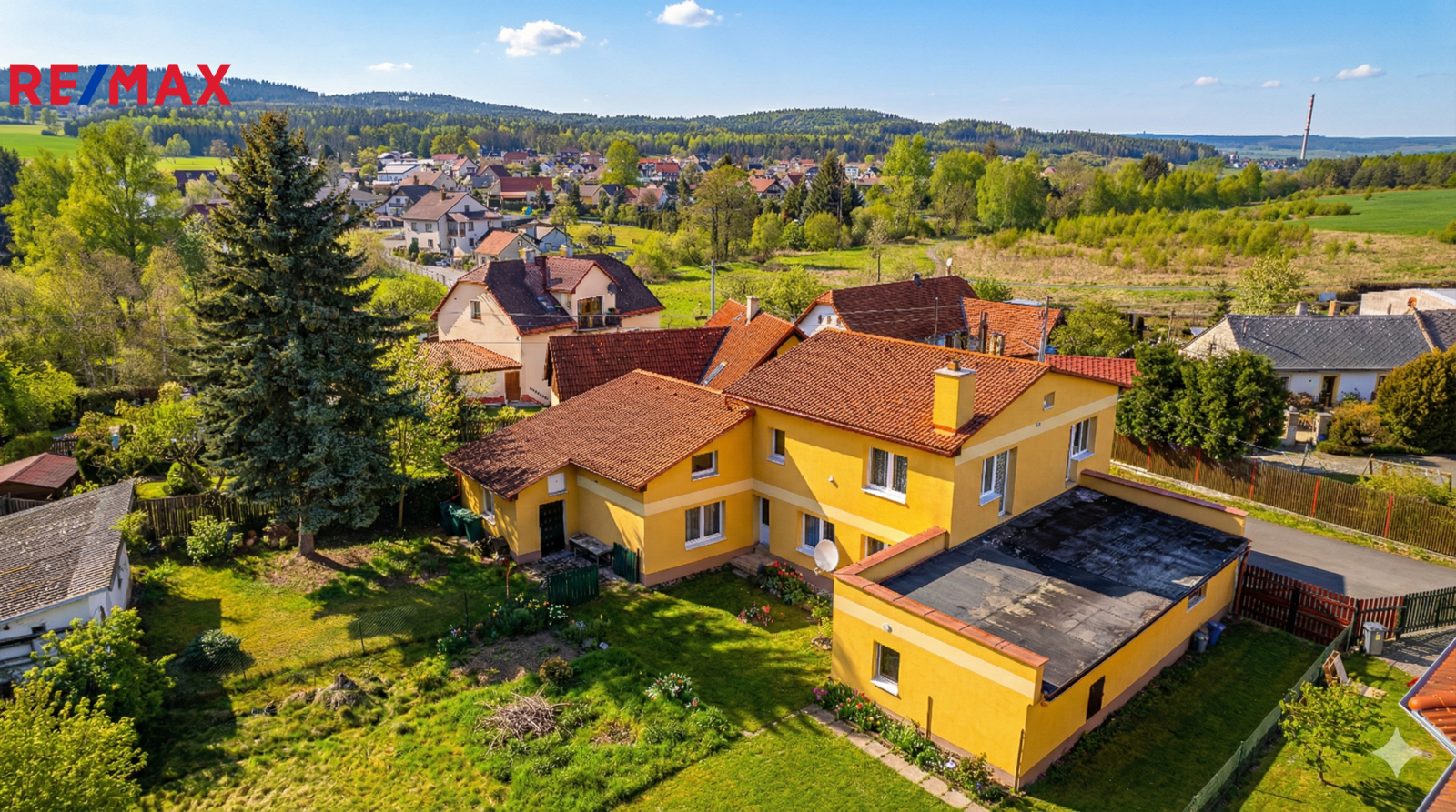 Zahrada, která dýchá (1 618 m²) Tohle není "anglický trávník kolem bazénu", ale pořádný kus země. Děti tu můžou postavit bunkr, vy můžete sázet brambory nebo prostě jen vypnout telefon a užívat si, že sousedé jsou v bezpečné vzdálenosti. K tomu dvě garáže, kam schováte auta i dílnu.