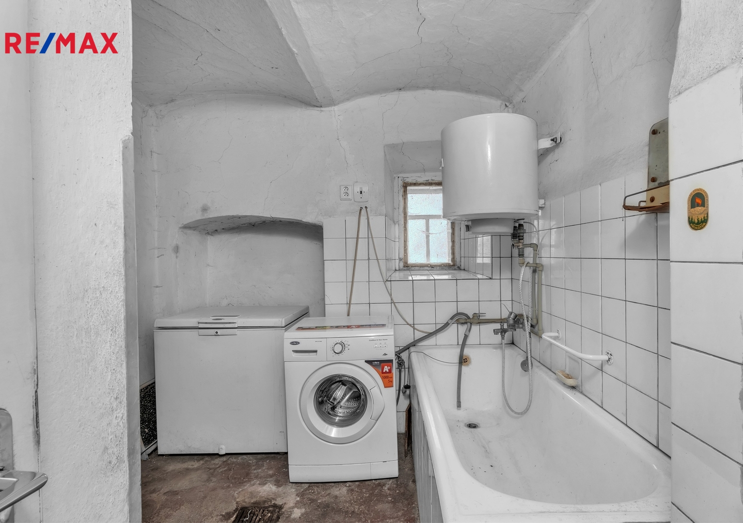 Dům je částečně podsklepený – ze zadní části vedou schody do kamenného sklepa s klenutým stropem, částečně vytesaného ve skále.