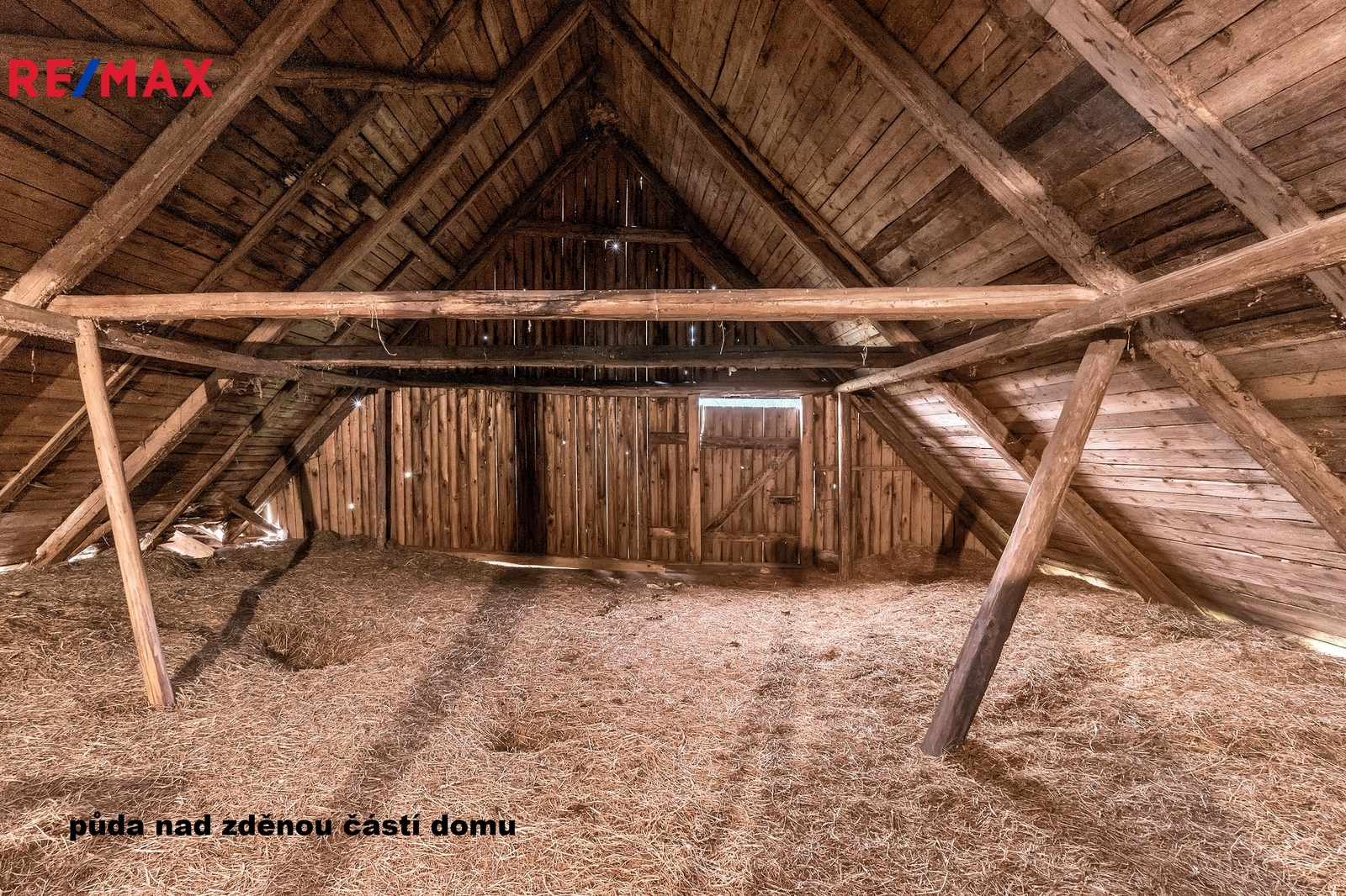 Nabízíme k prodeji tradiční roubenou chalupu s kamennými přístavky, velkou stodolou a rozsáhlými pozemky vedenými v územním plánu jako plochy bydlení – bytové domy.