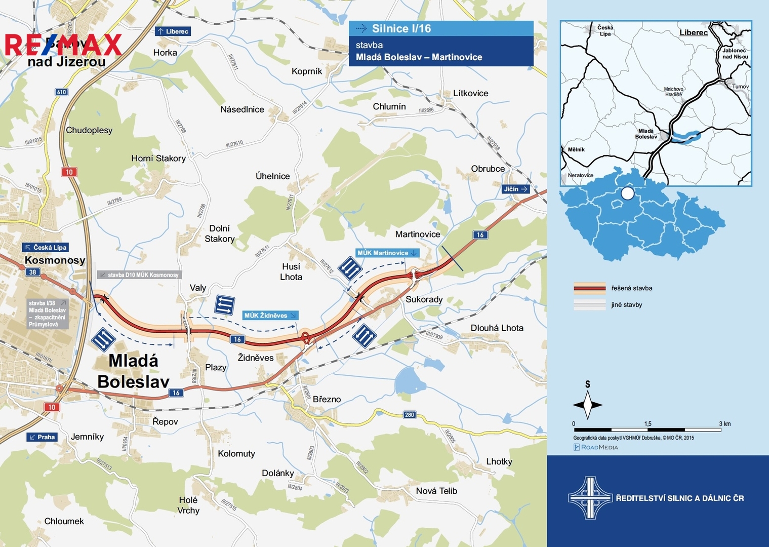 V současnosti probíhá stavba přeložky silnice I/16, která nově spojí Kosmonosy s Martinovicemi. Tato investice kraje do infrastruktury přispěje k lepší dostupnosti této lokality a pozitivně ovlivní hodnotu nemovitostí v námi nabízené obci. Dokončení silnice je plánováno na 3/4 roku 2027.