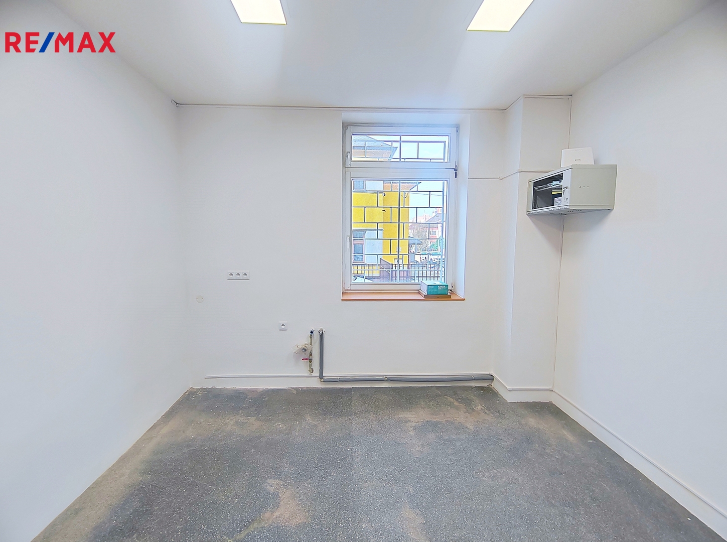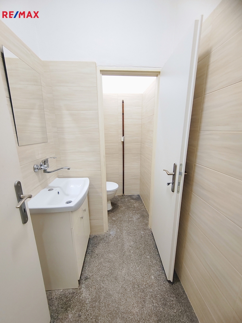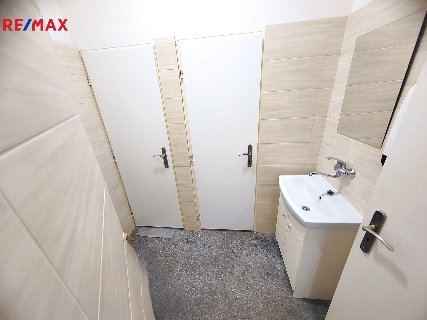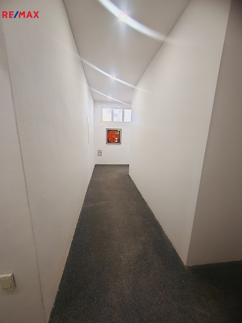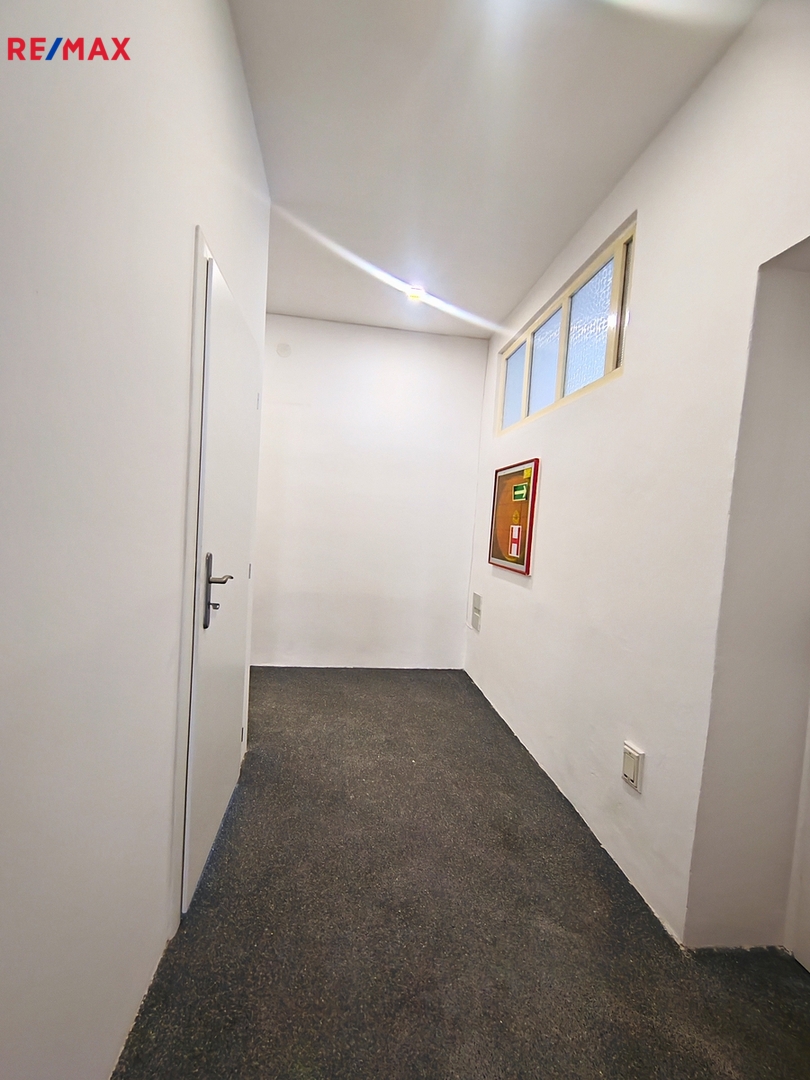 Na hlavní část navazuje vzadu spojovací chodba o velikosti cca 20 m², ze které je přístup do kompletně nově vybudovaného sociálního zázemí – WC pro muže a ženy, úklidová místnost a samostatná sprcha. Dále se v zadní části prostor nachází místnost o ploše 12 m², vhodná jako šatna nebo zázemí pro zaměstnance.