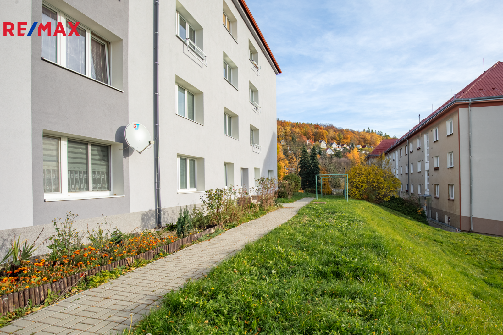 Byt v osobním vlastnictví se nachází v nově revitalizovaném domě na Meziboří v ul. Hornická č. p. 206.