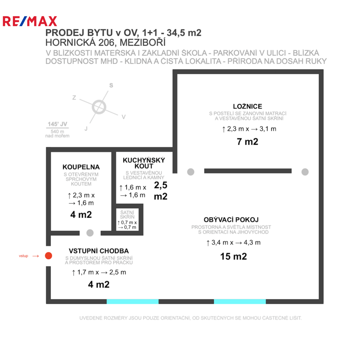 ✔ světlý byt 1+1, 34,5 m²