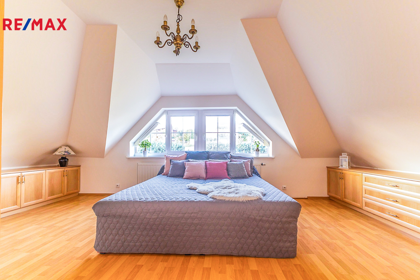 Nemovitost má výměru 210 m2 a dispozici 5+kk. V přízemí najdete vstupní halu, obývací pokoj, kuchyňský i jídelní kout, pracovnu s velkorysými úložnými prostory a koupelnu se sprchovým koutem a WC. V patře pak tři samostatné pokoje, technickou místnost a druhou prostornou koupelnu s vanou a WC. Dům je zateplený, má plastová okna a žaluzie. Je částečně vybaven, a tak se do něj lze ihned nastěhovat. Topení a ohřev vody je řešeno plynovým kotlem, v obývacím pokoji je k dispozici krb.