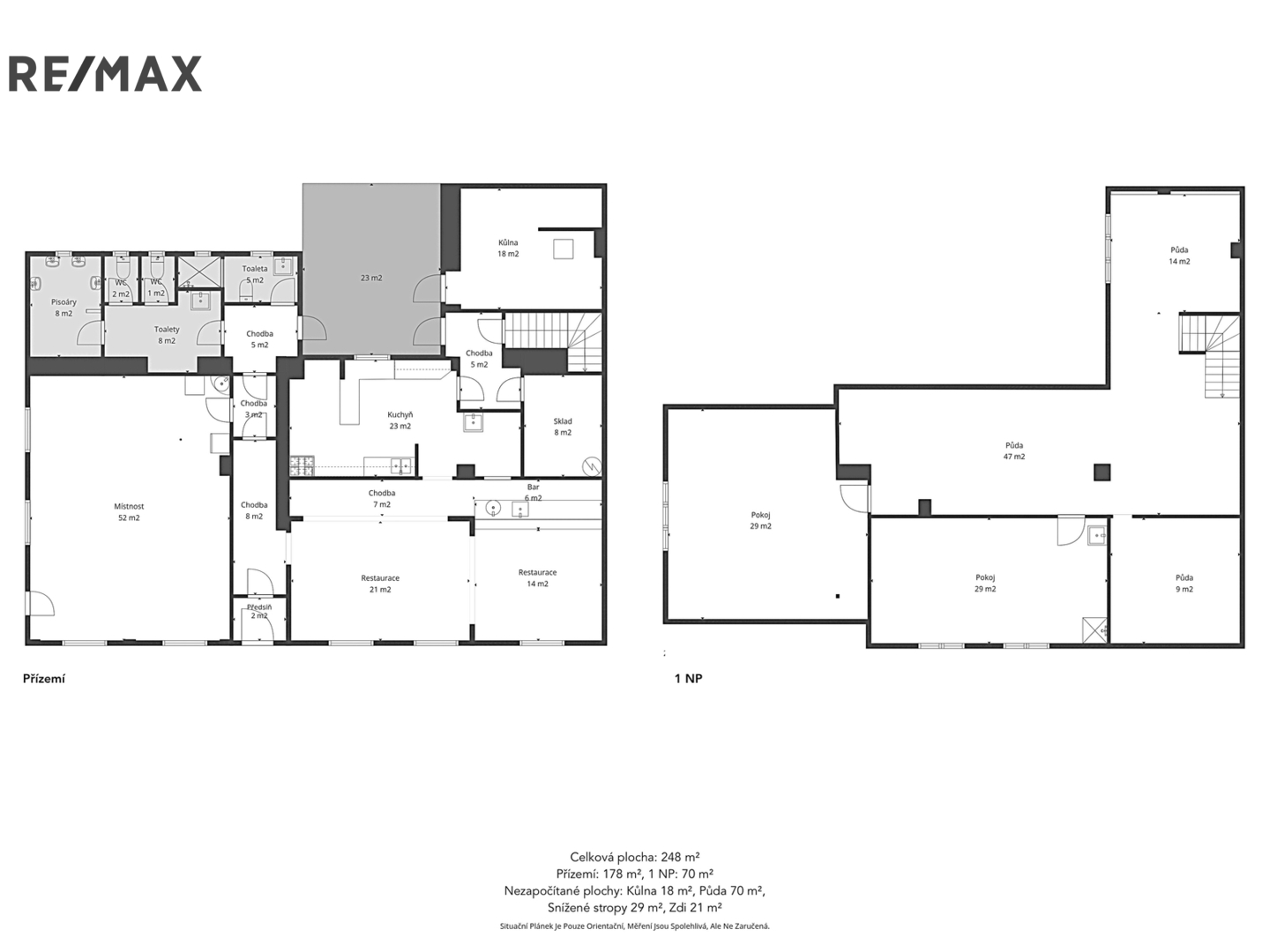 V horním patře se nachází rozlehlá půda s obrovským potenciálem. Lze zde vybudovat další obytné pokoje, dětské království, pracovnu, ateliér nebo celé samostatné patro. Tento prostor dává domu skutečnou hodnotu do budoucna a umožňuje růst spolu s vaší rodinou.