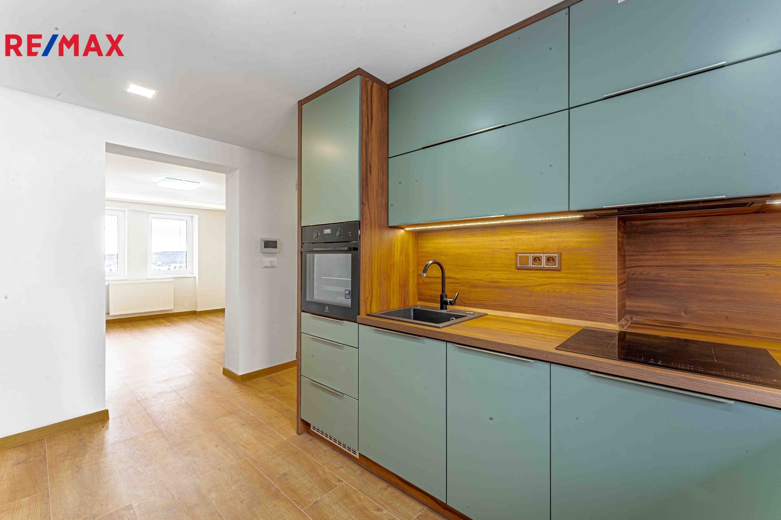 Byt je kompletně zrekonstruovaný, jsou nové podlahy, dveře, kuchyň, koupelna a v neposlední řadě elektrokotel a bojler.