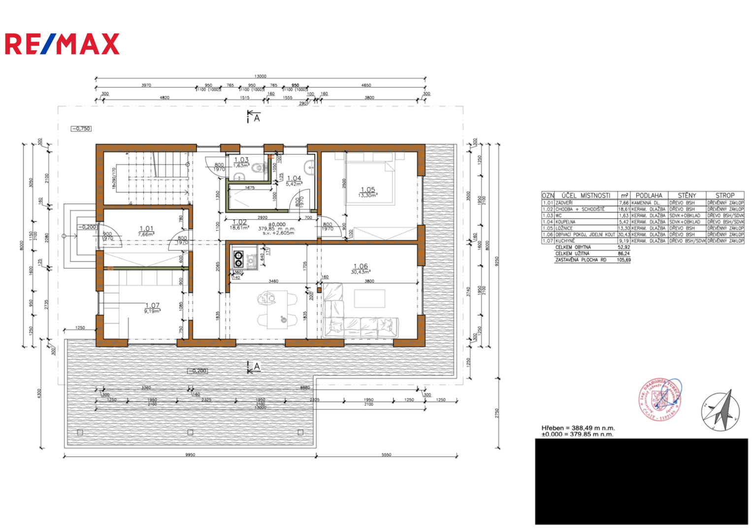- celková zastavěná plocha včetně terasy a zpevněných ploch: 260,24 m²