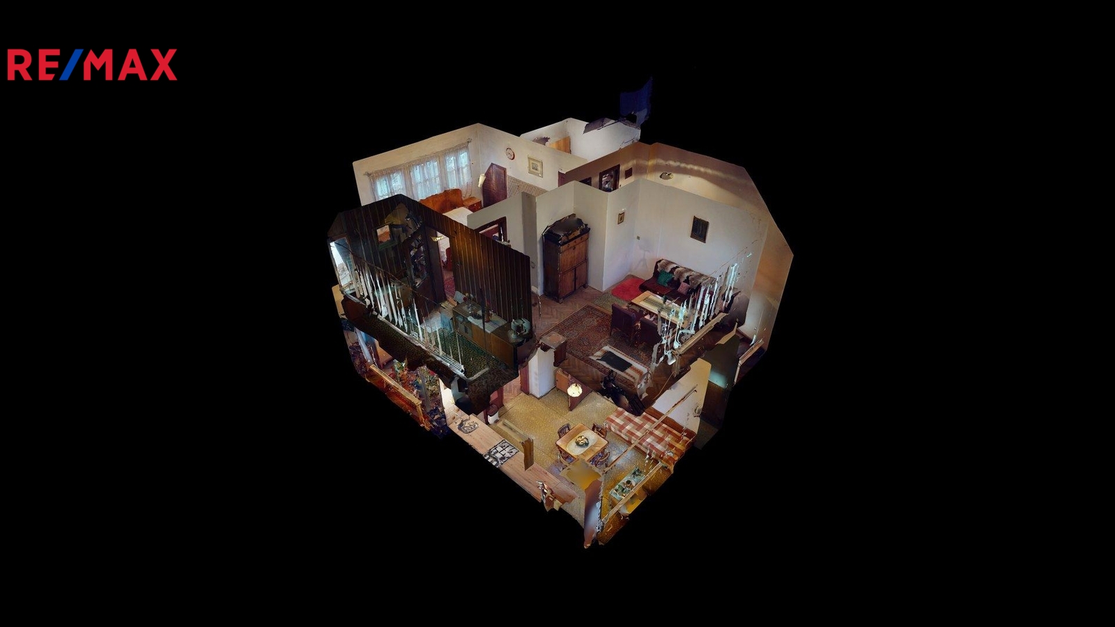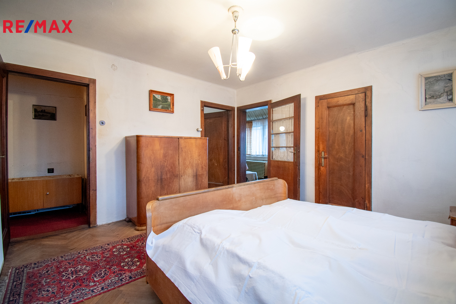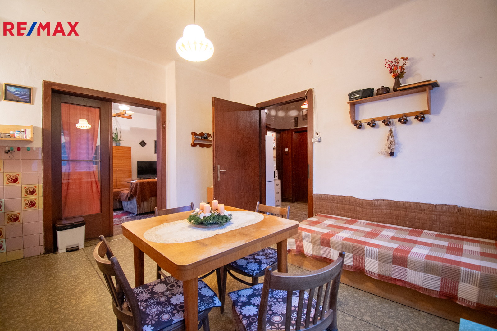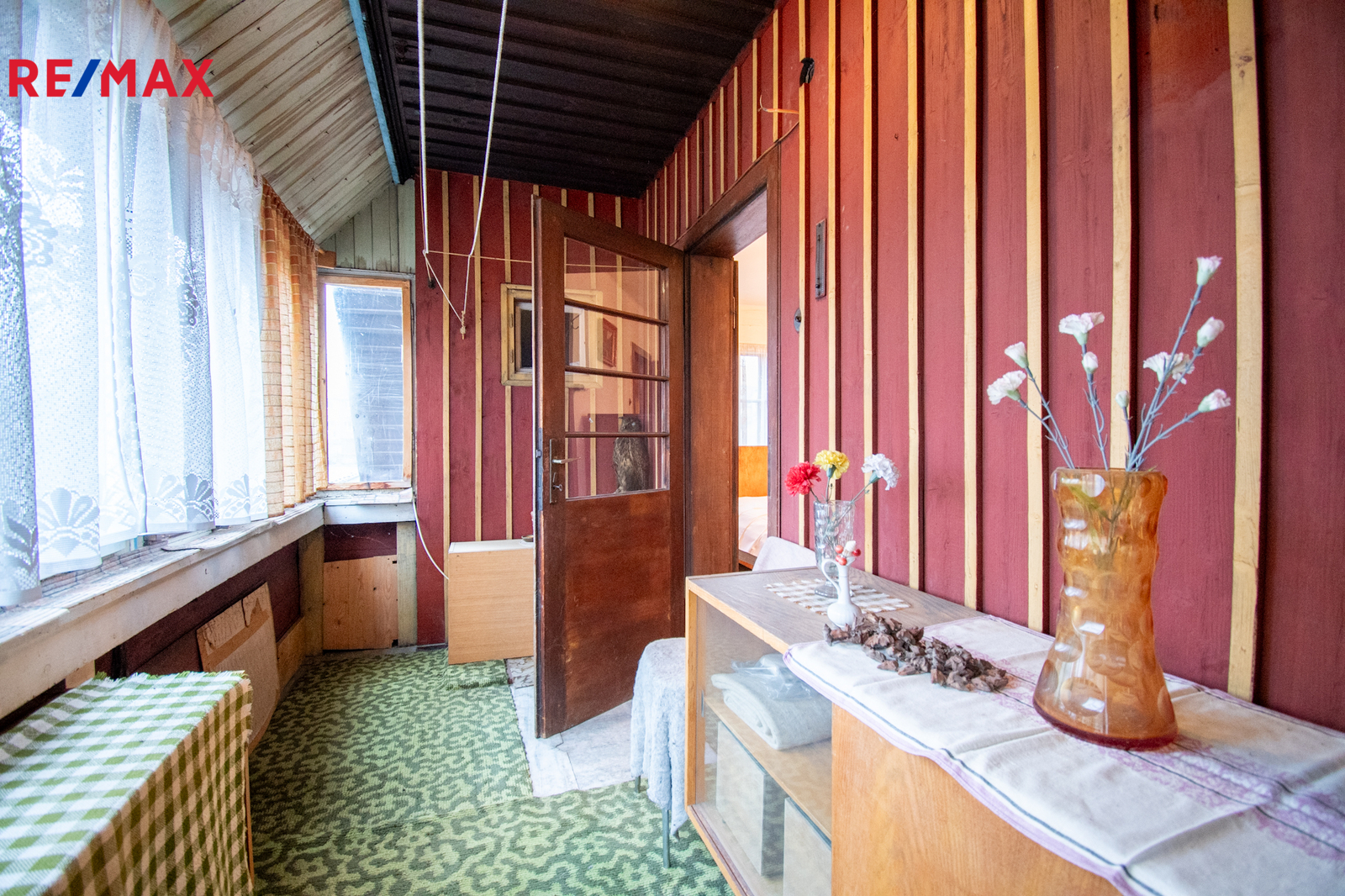 V přízemí se nachází kuchyně, obývací pokoj, koupelna s WC, vstupní hala se zádveřím, přímý vstup do sklepa, který je prostorný pod většinou stavby. Do patra vede původní dřevěné schodiště. V patře jsou dva průchozí pokoje s možností úpravy na neprůchozí, oba s vestavěnými šatnami což umožňuje moderní dispozici. Z jednoho pokoje je vstup na uzavřenou verandu, lze využít jako lodžii nebo další obytný pokoj. Dále se zde nachází místnost se vstupem do neobytného podkroví o výměře necelých dvacet pět metrů čtverečních, kde lze v rámci rekonstrukce vybudovat další koupelnu nebo obytný pokoj.