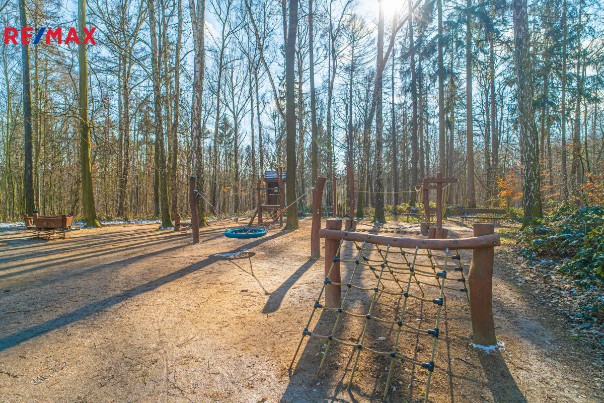 Lokalita nabízí vynikající občanskou vybavenost v docházkové vzdálenosti – školy, školky, obchodní centra, lékaře, dětská hřiště i oblíbený lesopark Bažantnice. Velkou výhodou je skvělá dopravní dostupnost – pár kroků od domu se nachází zastávky MHD, PID i vlaková stanice s přímým spojením do Prahy.