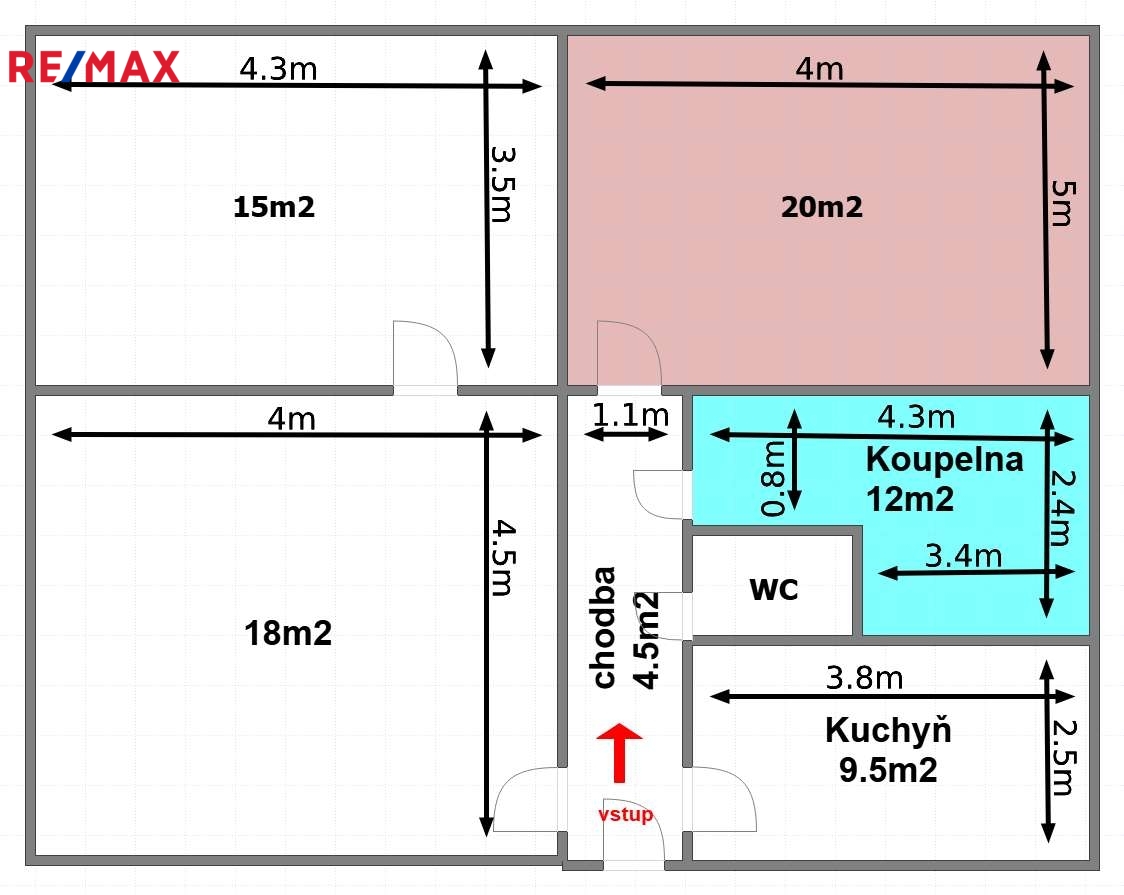 Dispozice bytu: 2 neprůchozí pokoje a 1 průchozí pokoj, prostorná chodba, kuchyně, prostorná koupelna, samostatné wc