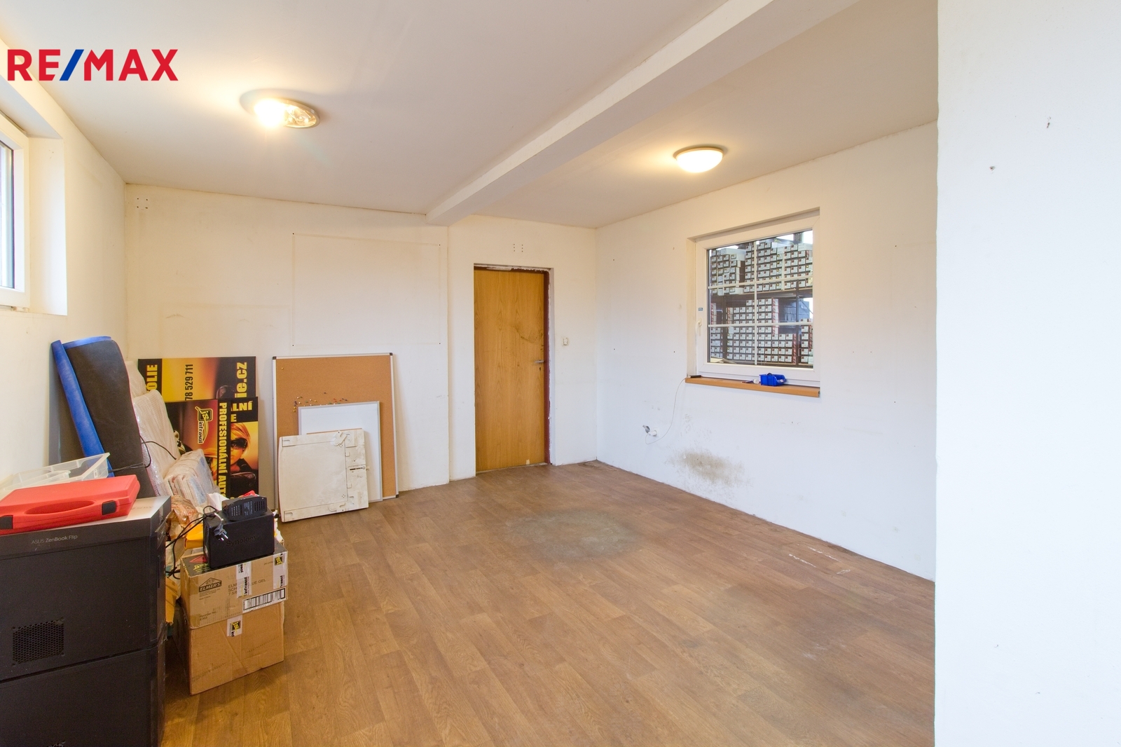 Součástí skladu je samostatná, uzamykatelná kancelář, kterou lze komfortně vytápět elektrickými přímotopy, a také sociální zázemí (WC, umyvadlo). Prostor je vhodný jak pro skladování, tak pro lehkou výrobu či řemeslný provoz.