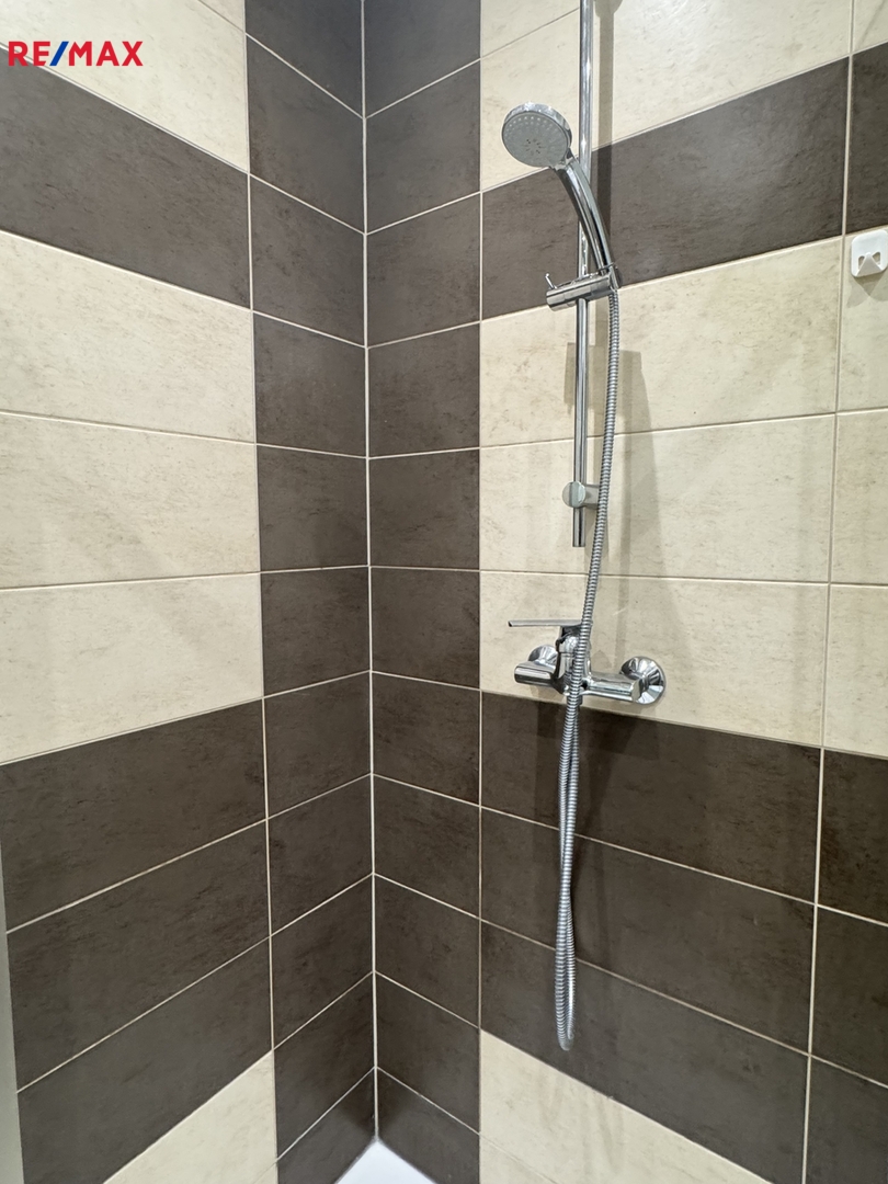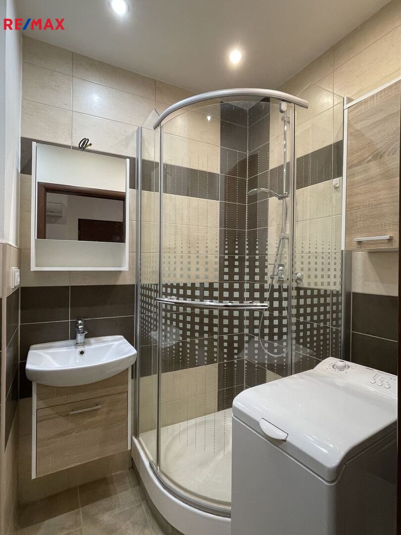Jedná se o hezký byt, který prošel rekonstrukcí (plastová okna, plovoucí podlaha, zděné jádro) a je vybavený kuchyňskou linkou, sporákem s troubou, lednicí, pračkou, pohovkou, konferenčním stolkem, obývací stěnou a skříní. Koupelna se sprchovým koutem a WC.