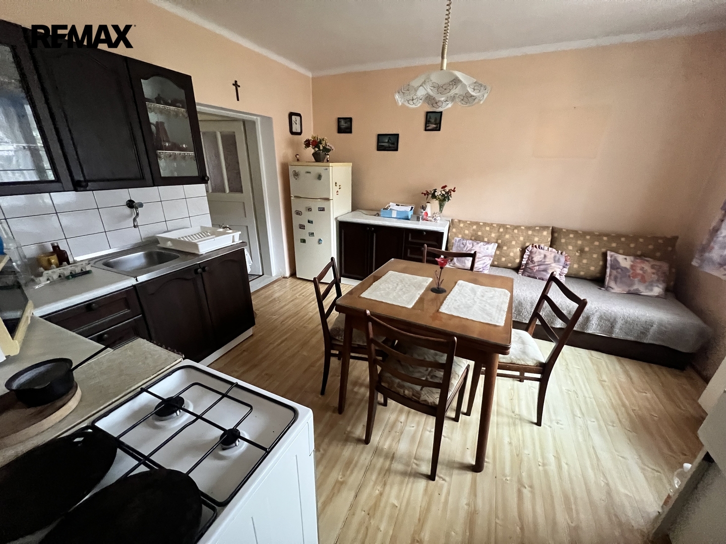 Přízemí má 2 samostatné pokoje, kuchyň, koupelnu a komoru, WC.