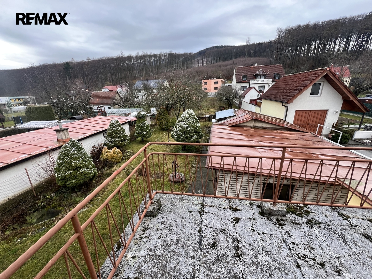V patře jsou 2 pokoje a kuchyň plus nezateplené úložné prostory na půdě, které lze využít na rozšíření bydlení, koupelnu.