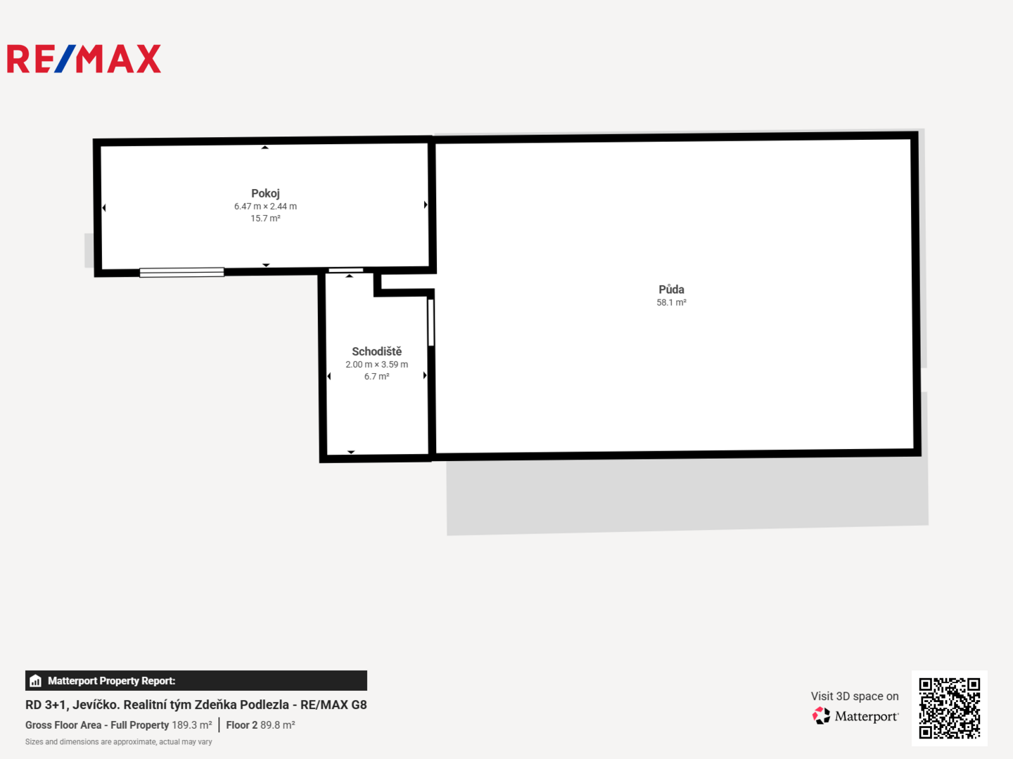 Ve 2. nadzemním podlaží se nachází pokoj a půda, která umožňuje případné vybudování dalších místností podle Vašich potřeb.