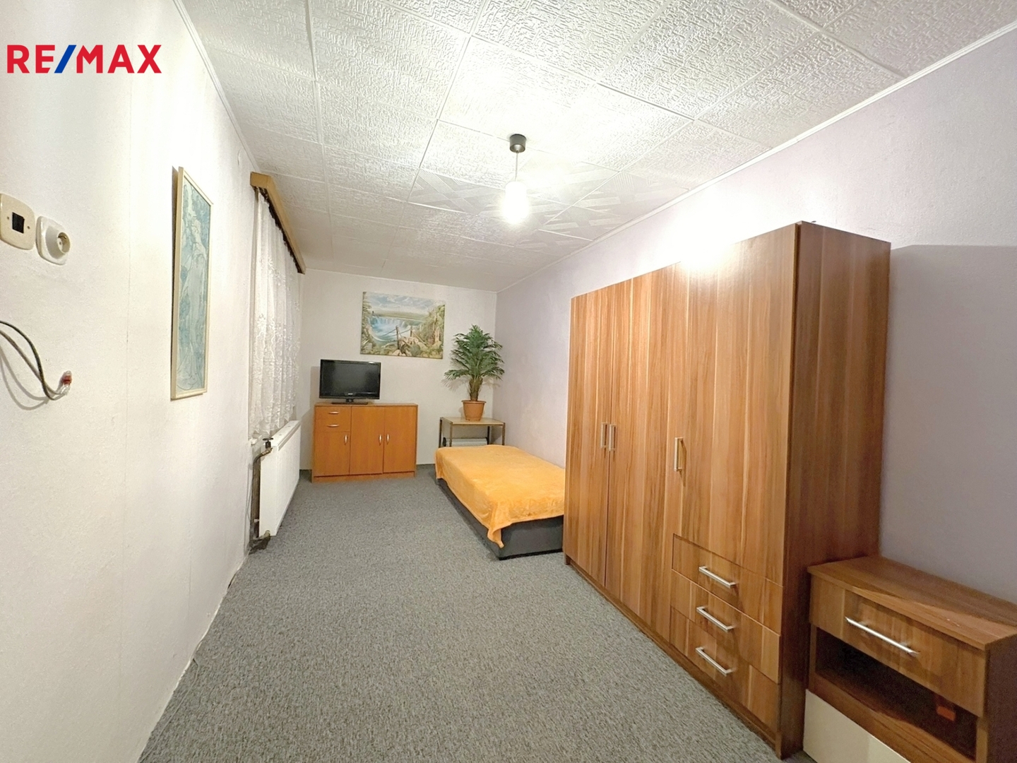 Elektrický kotel z roku 2015, plastová okna z roku 2017.