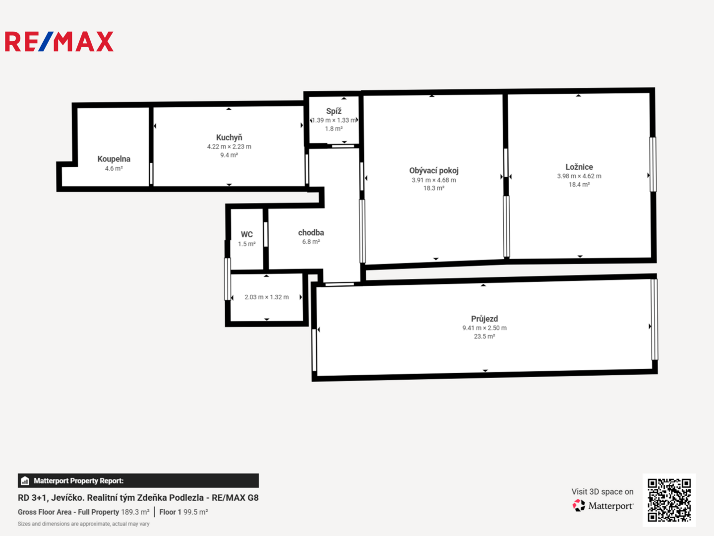 Celková užitná plocha k bydlení je 83 m², navíc průjezd 23 m², půda 58 m² a sklepní prostor, který je v současnosti nevyužitý. Ze dvorku je přístup do místnosti, kterou lze využít jako dílna či druhý sklep.