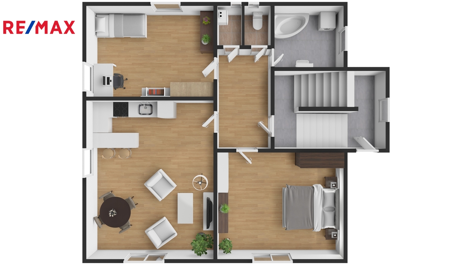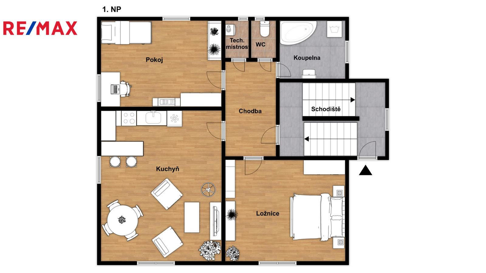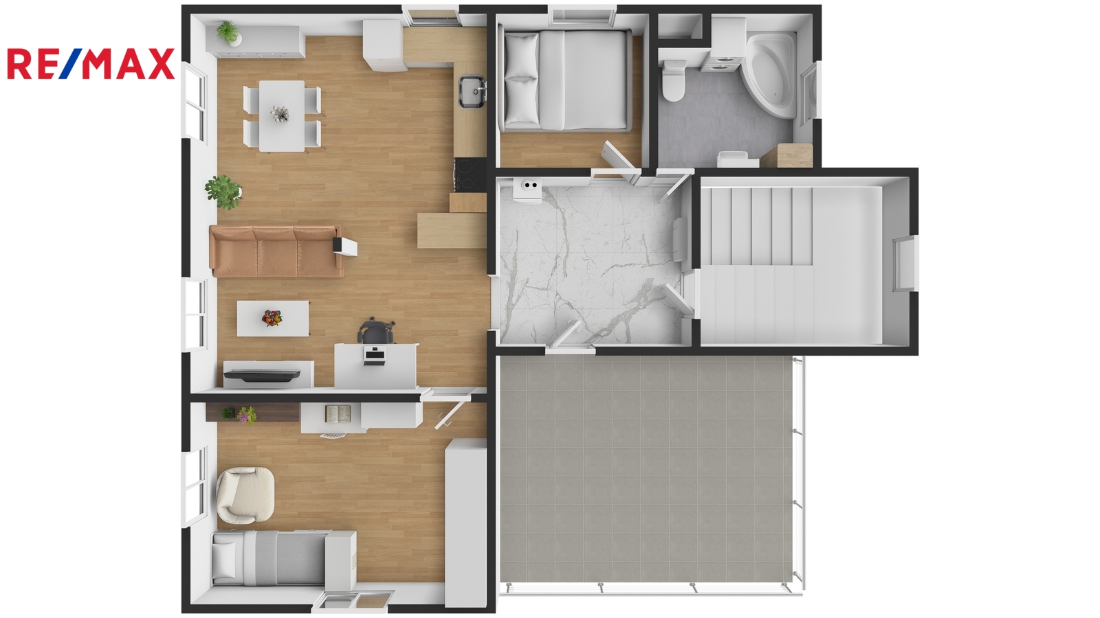 • 3. NP – byt 3+kk s terasou, podlahová plocha cca 60 m², po kompletní rekonstrukci, obsazen do 5–6/2026.