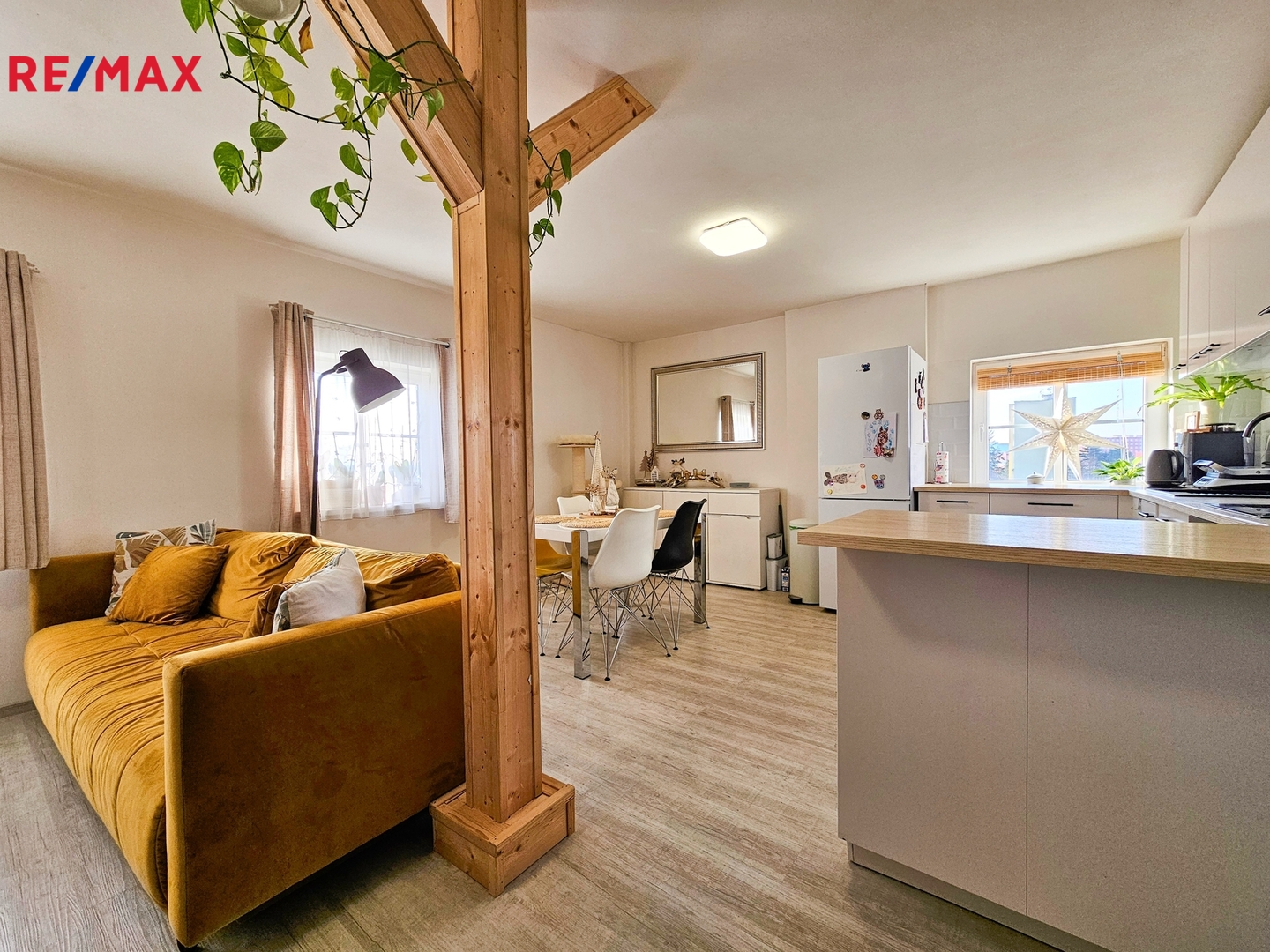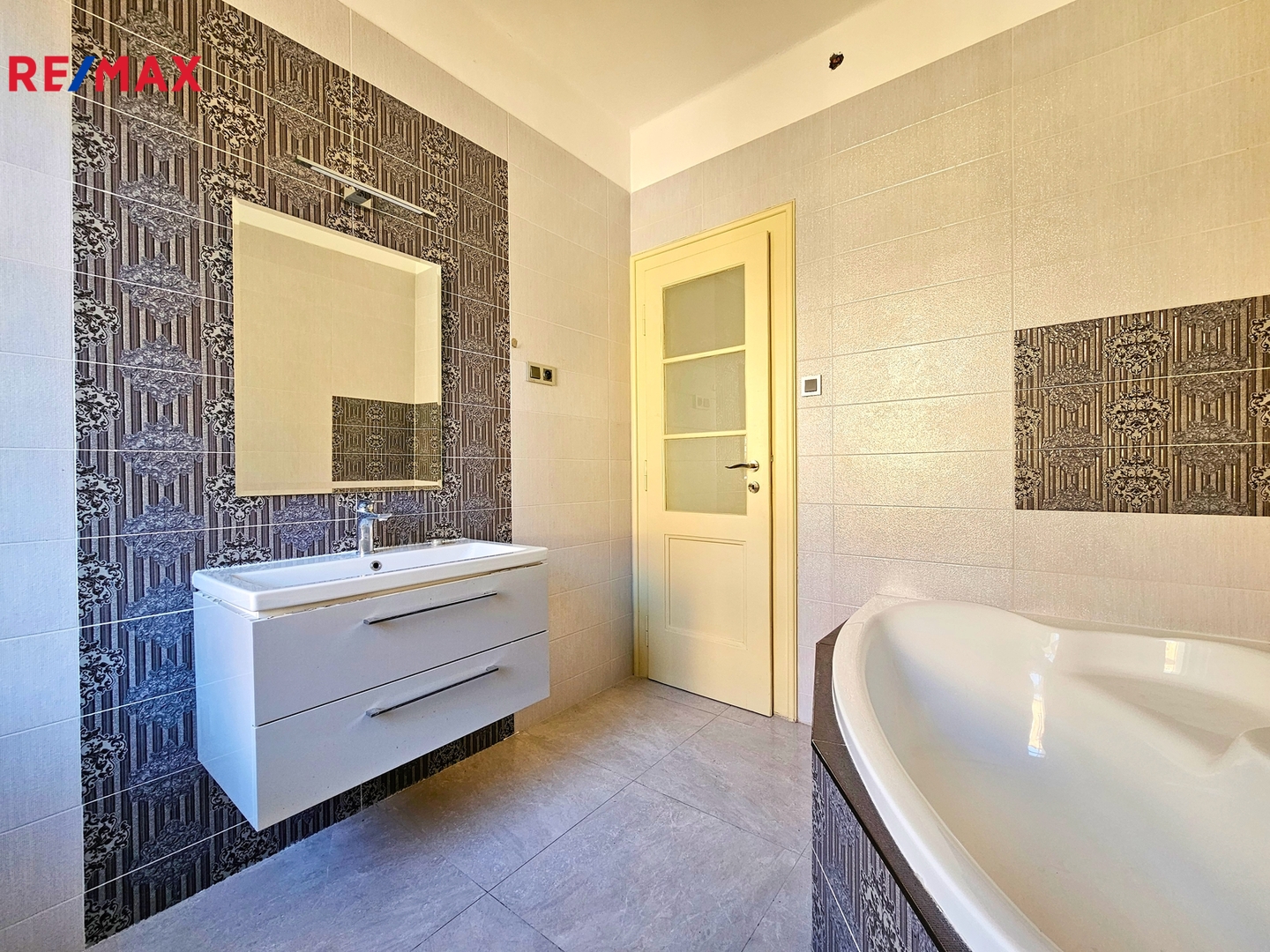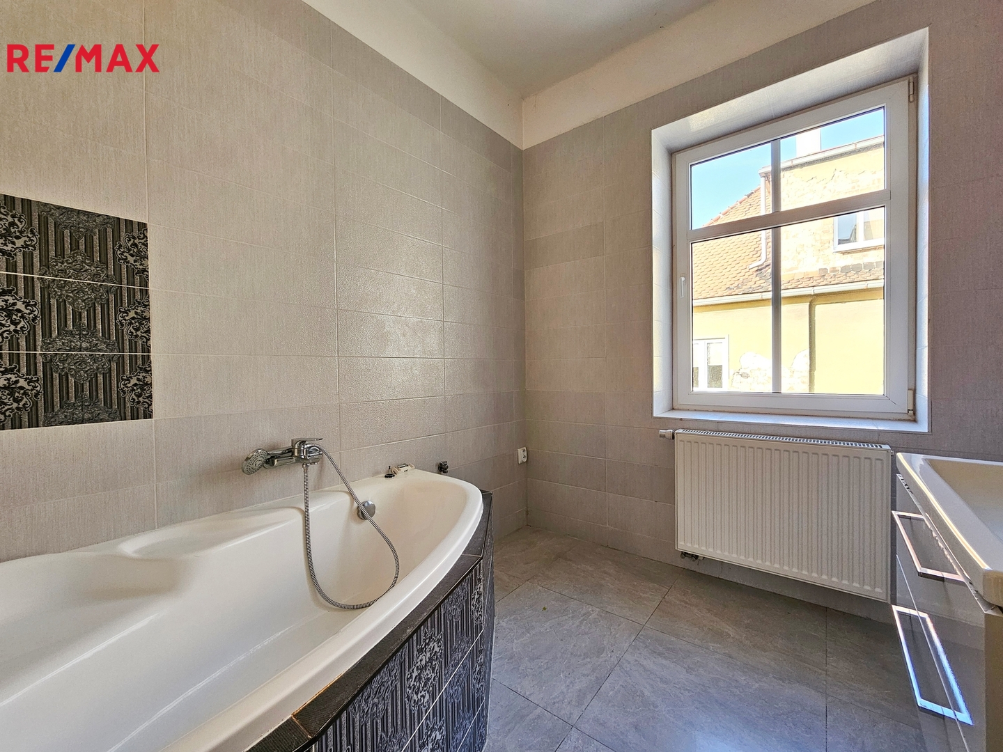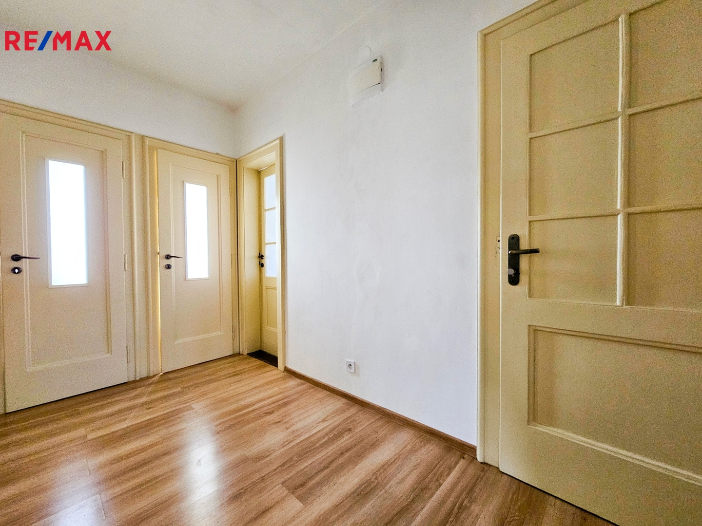 • 1. NP – byt o dispozici 3+kk, podlahová plocha cca 80 m². Byt je po kompletní rekonstrukci, zachovává původní obložky, disponuje novými podlahami, koupelnou i kuchyňskou linkou. Aktuálně je dlouhodobě pronajat, nájemníci mají zájem v nájmu pokračovat.