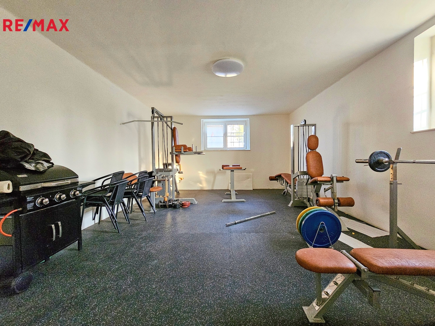 Suterén domu je díky vysokým stropům plnohodnotně využitelný a nabízí široké možnosti dalšího rozvoje – např. vybudování společného zázemí pro nájemníky (fitness, klubovna, vinný sklep, apod.) nebo další bytové jednotky. Nachází se zde koupelna, WC, dvě samostatné místnosti, velký prostor s přípravou na kuchyňskou linku, technické místnosti a skladové prostory. Podlahová plocha suterénu činí cca 70 m².