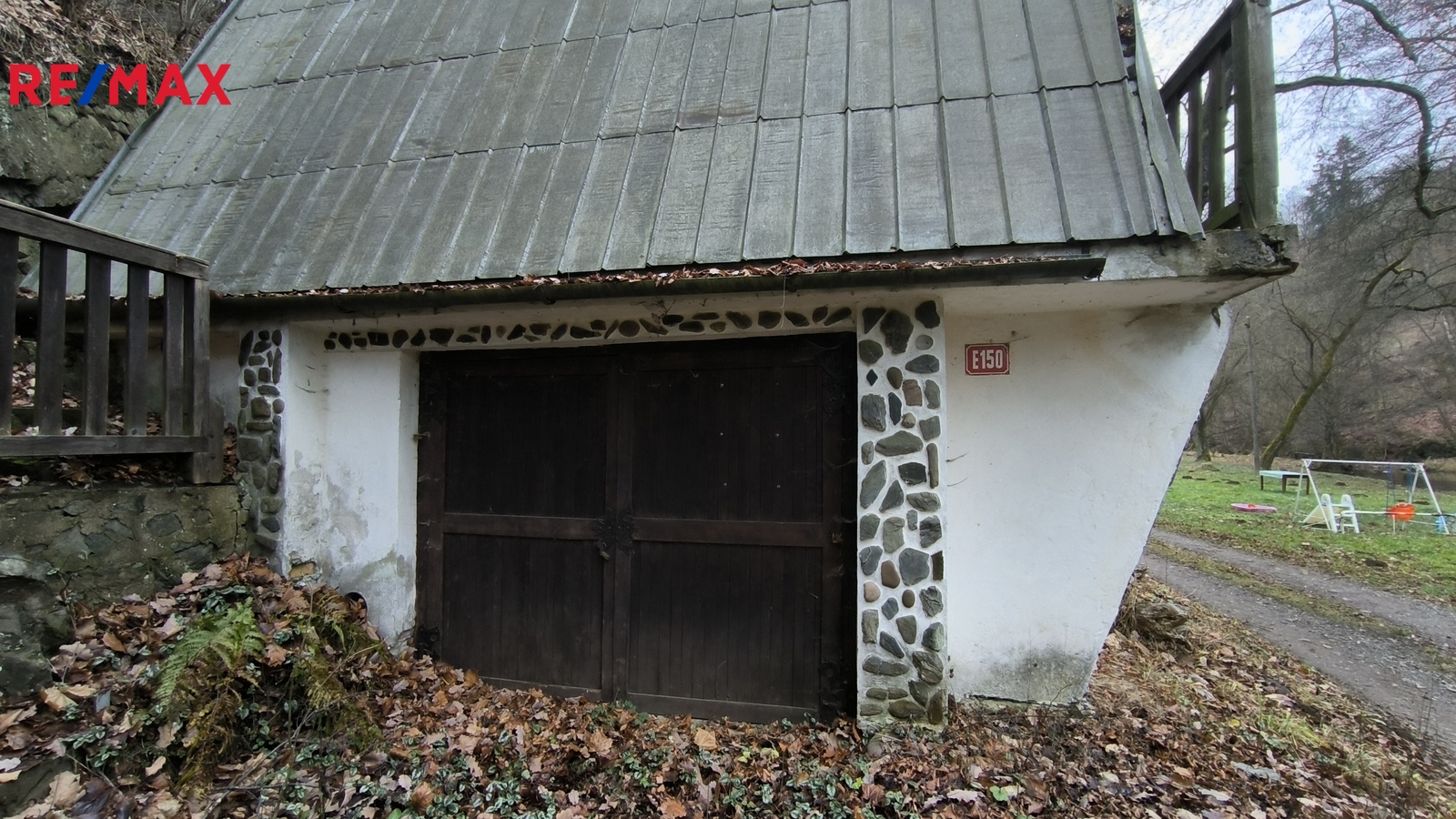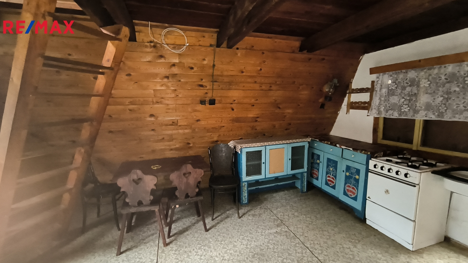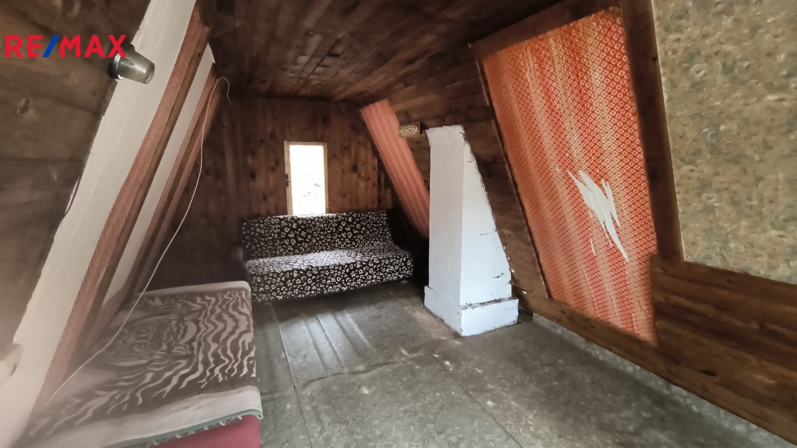 Chata stojí na vlastním pozemku o ploše 29 m², před objektem se rozprostírá travnatá plocha vhodná k posezení, relaxaci či pobytu u vody. Dispozice chaty zahrnuje obytnou místnost s kuchyňským koutem, podkrovní prostor určený k přespávání a menší terasu, z níž je příjemný výhled na okolní přírodu. Dole v chatě se nachází prostorná garáž s novou elektrickou přípojkou na 230 V a rovněž septik. Chata je částečně vybavena a topné těleso tvoří kamna, které zajistí příjemné teplo během chladnějších večerů.