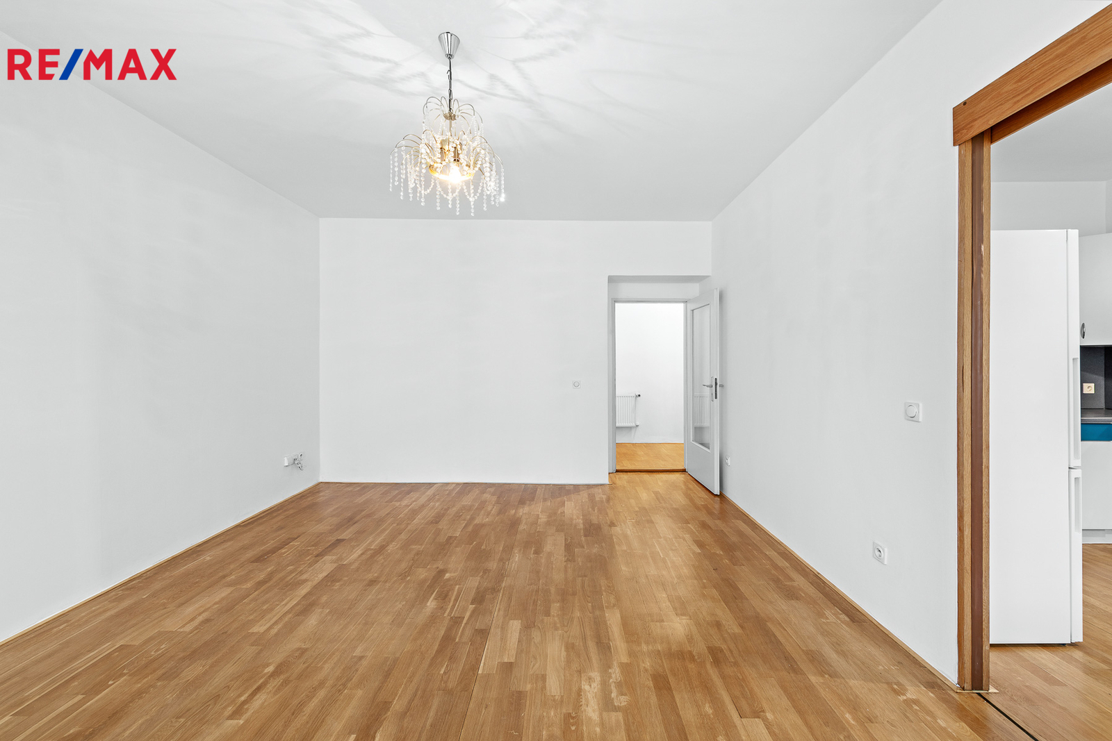 V bytě jsou dřevěné podlahy (parket), koupelna má dlažbu, topení je dálkové, okna jsou nová dřevěná a jsou zde závěsy.