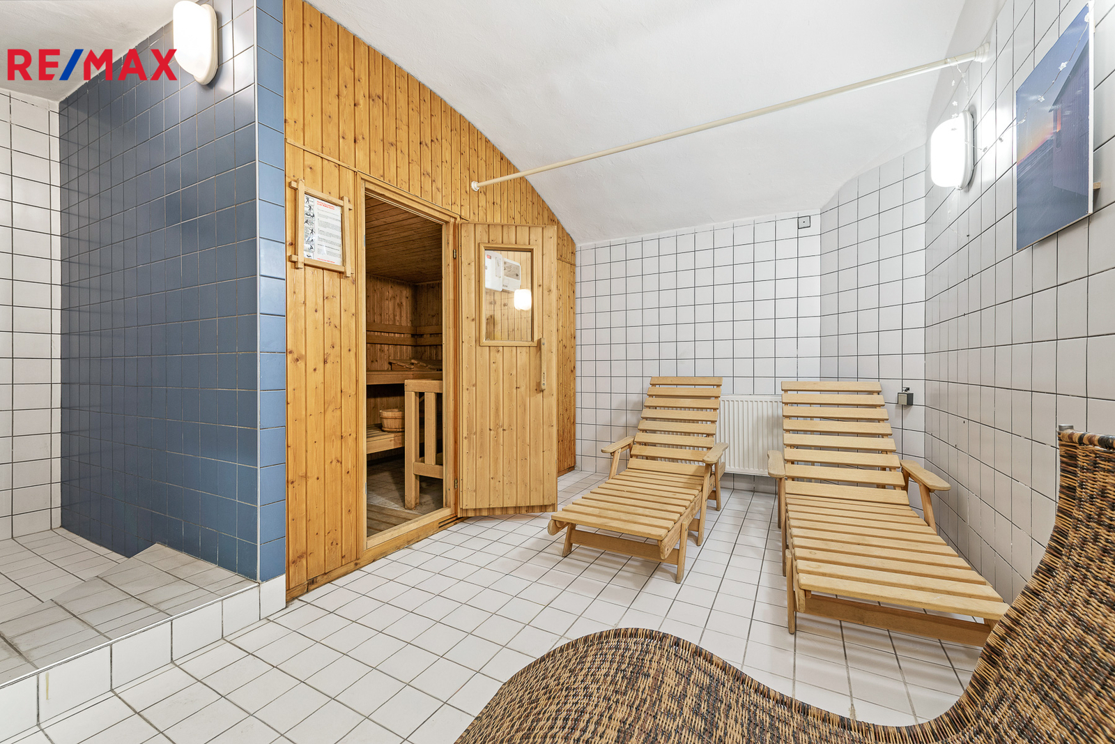 V domě je vlastní sauna a sportovní koutek s odpočinkovou zónou.