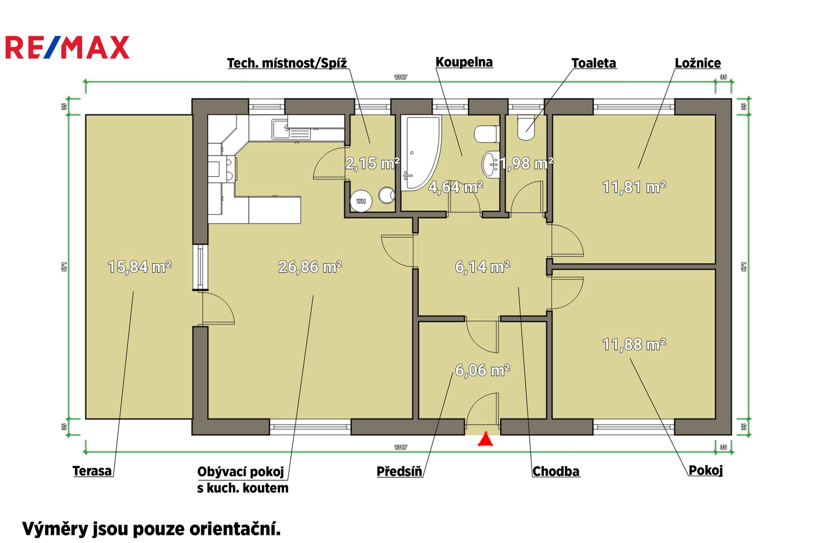 • prostorný obývací pokoj s kuchyňským koutem a vstupem na terasu