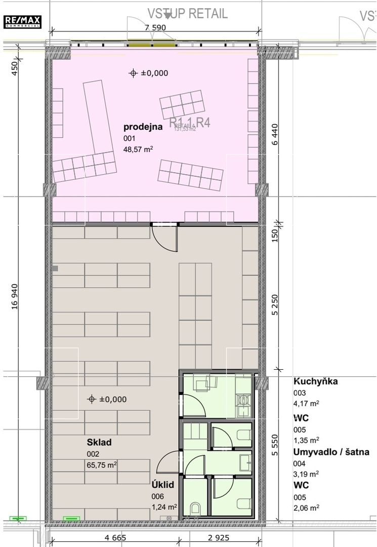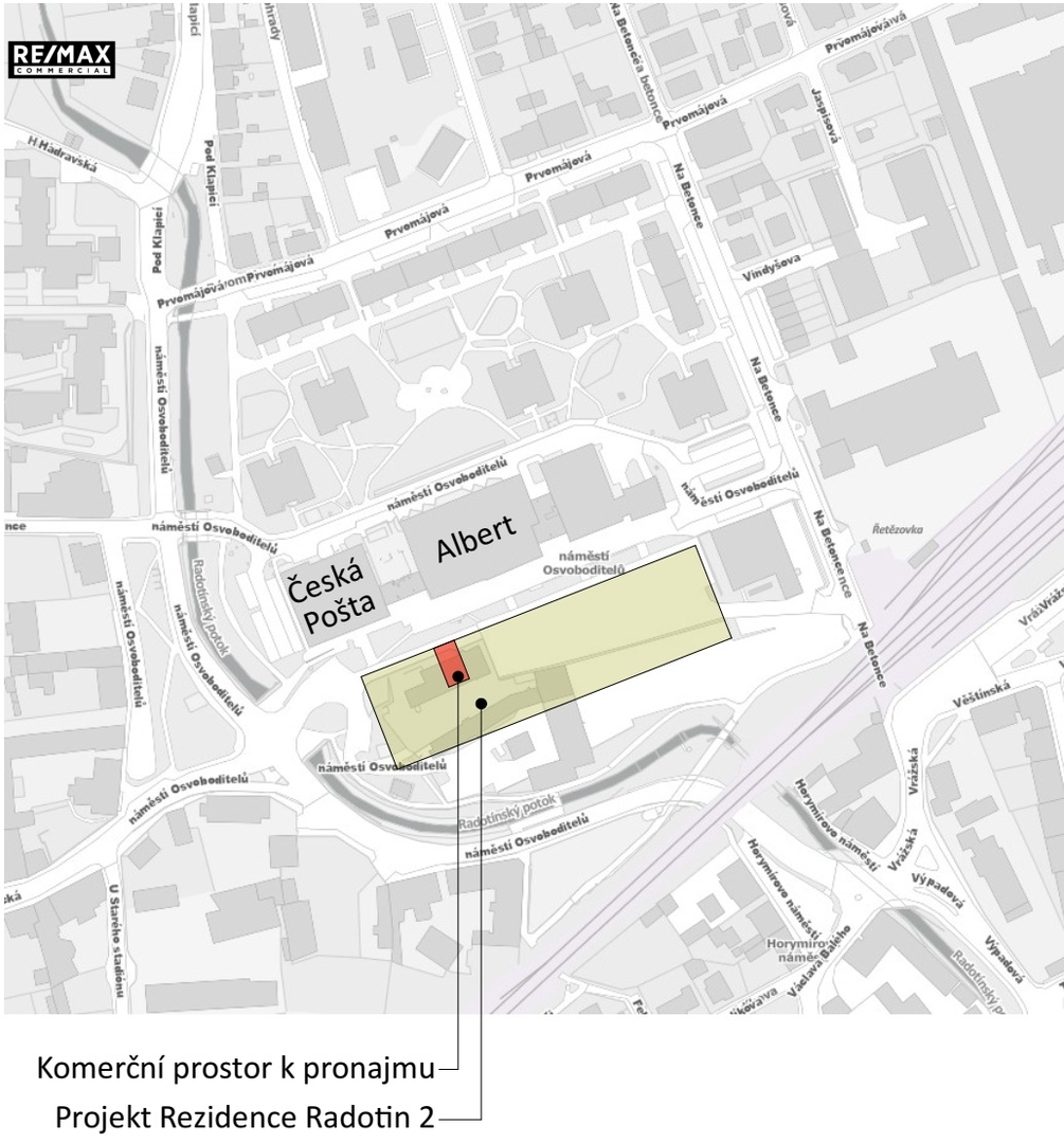 Představuji Vám obchodní prostor k pronájmu v projektu TRIO Radotín, který roste nedaleko plánované budovy nové radnice Městské části Praha 16, která je součástí celkového architektonického konceptu celé lokality. Prostor o celkové výměře 131,53 m2 se nachází v přízemí budovy B, k prostoru bude náležet 1 parkovací místo v podzemí budovy. Prostor není vhodný pro restaurační zařízení a jiný gastro provoz. Vyhovující je prodejna zboží denní spotřeby, oblečení a obuv, kožená galanterie, papírnictví, lékárna, spotřební elektronika atd., dále také provozovna služeb (kosmetika, kadeřnictví, opravna obuvi, IT servis..), prostor pro vzdělávání.