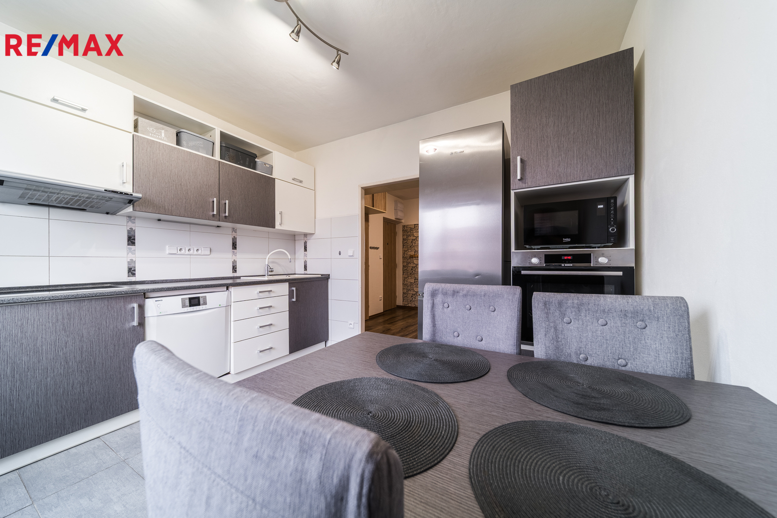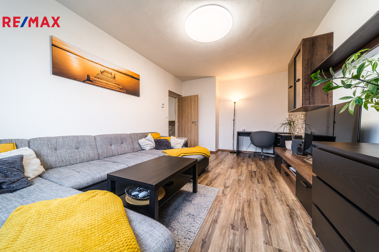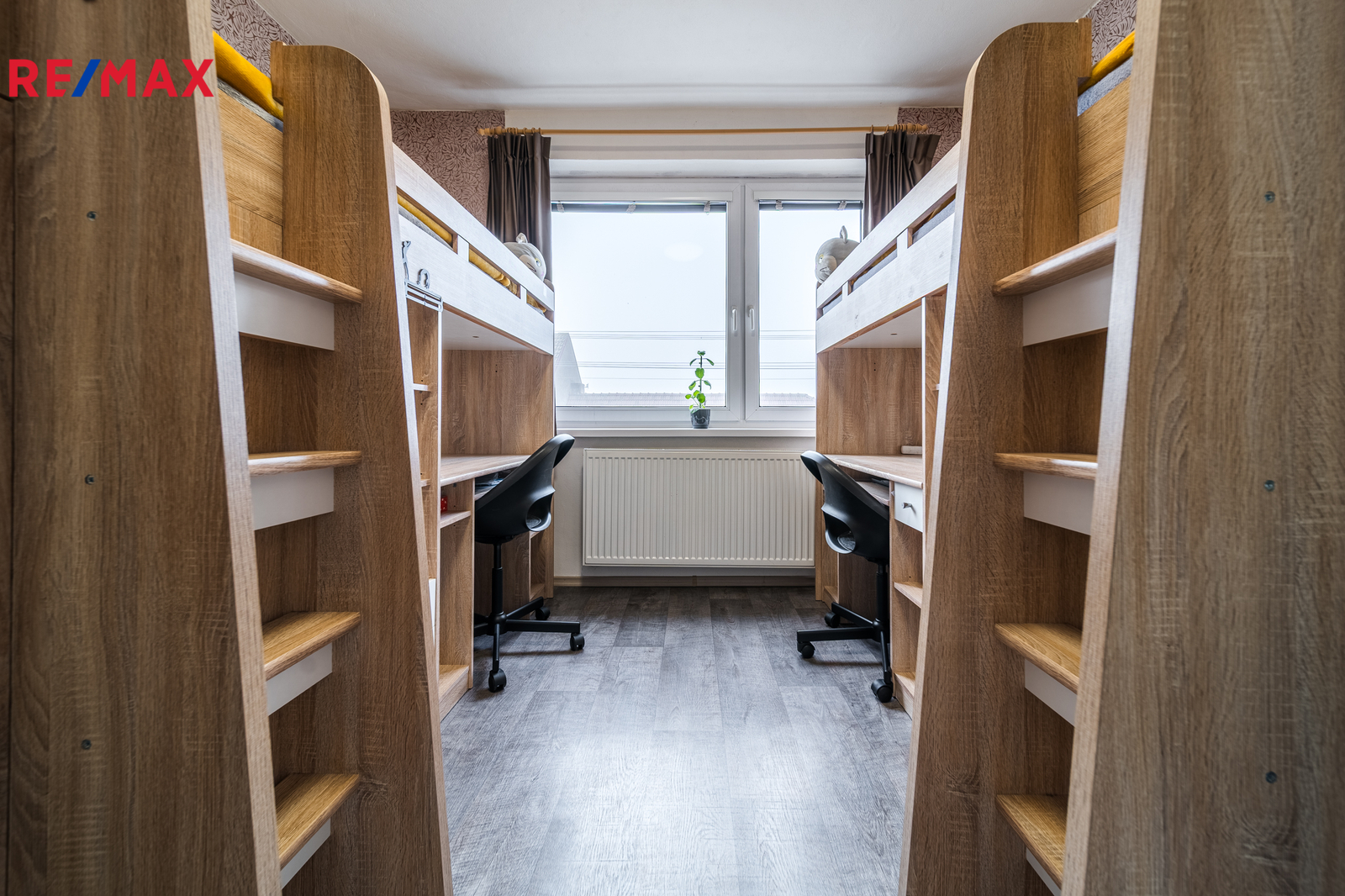 Byt má praktickou a přehlednou dispozici – z centrální chodby se vstupuje do všech místností, což zajišťuje dobré soukromí i logické uspořádání prostoru. Kuchyň je vybavena moderní kuchyňskou linkou a nabízí dostatek místa pro každodenní provoz. O vytápění se stará vlastní plynový kotel, který umožňuje mít náklady pod kontrolou.