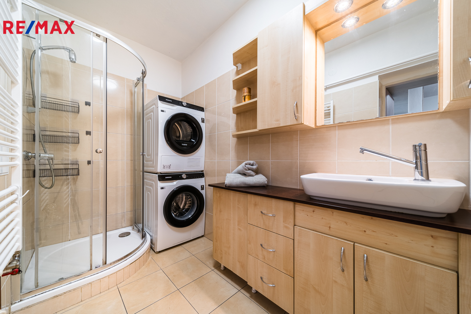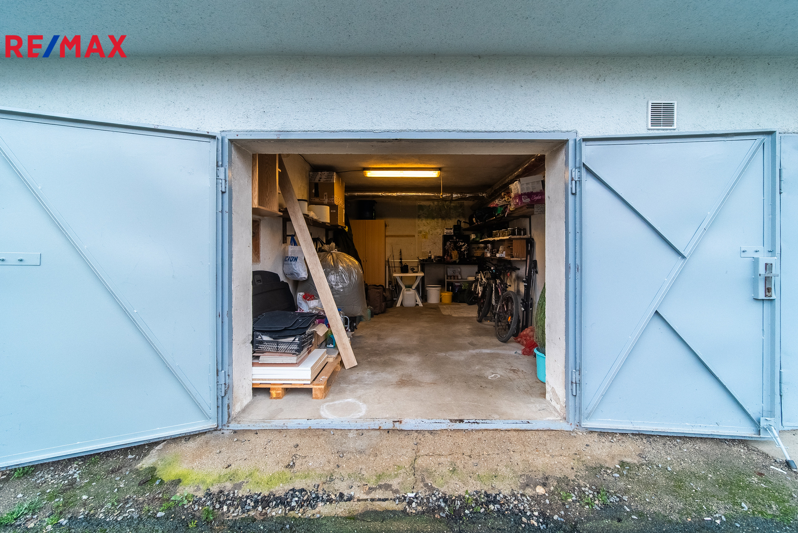 Součástí bytu je balkon o ploše 3,06 m², dále vlastní garáž o velikosti 18,7 m² přímo v domě a dva sklepy s celkovou plochou 8 m².