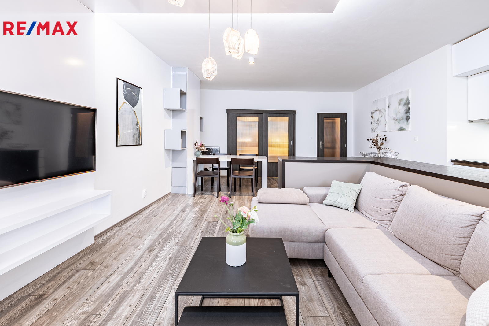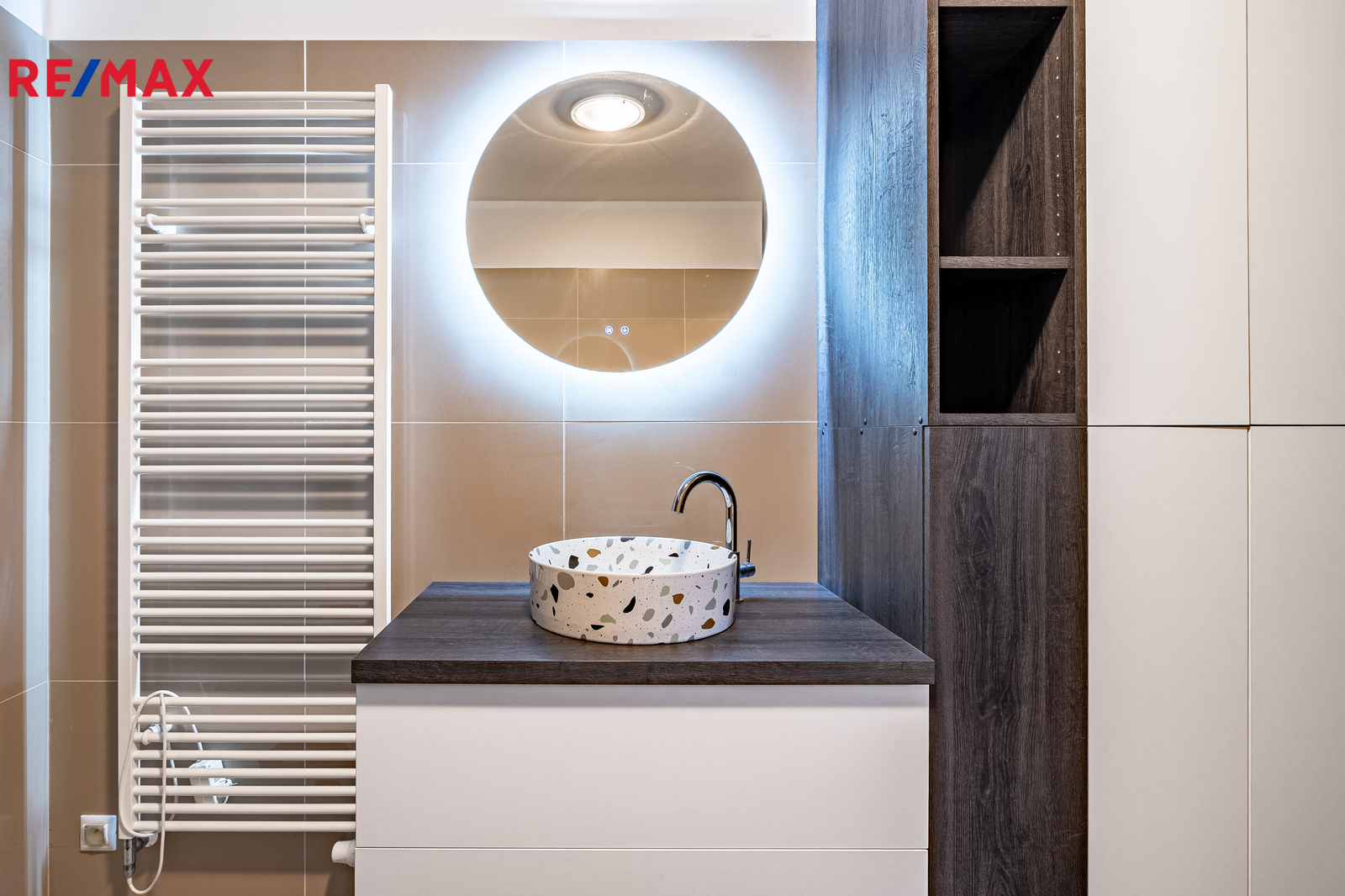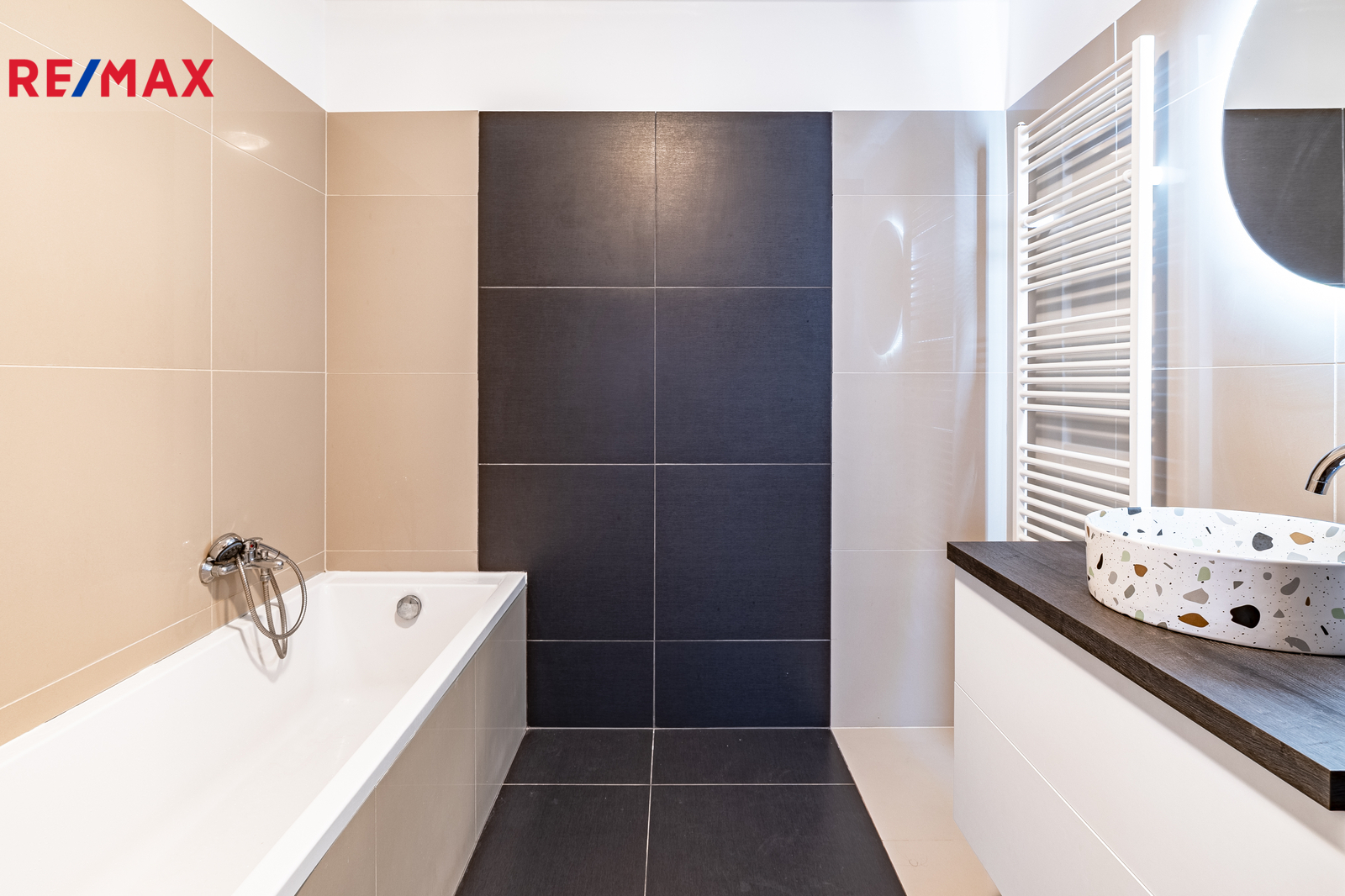 Nadstandardní světlý byt o dispozici 3+1 a celkové ploše 101,4 m² k dlouhodobému pronájmu. Byt disponuje prostorným balkonem o výměře 15,3 m² s výhledem do přírody. Dále se v bytě nachází prostorná komora/šatna. Koupelna s vanou a samostatné WC.
