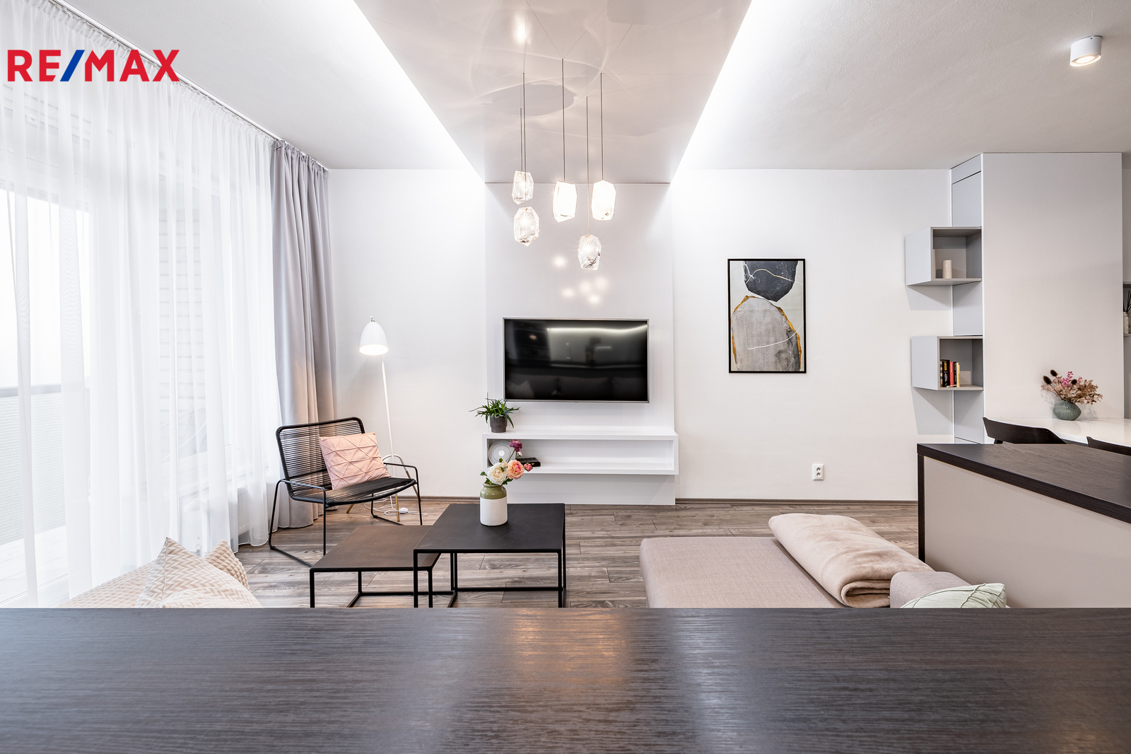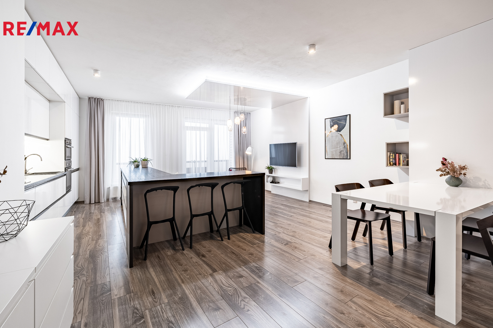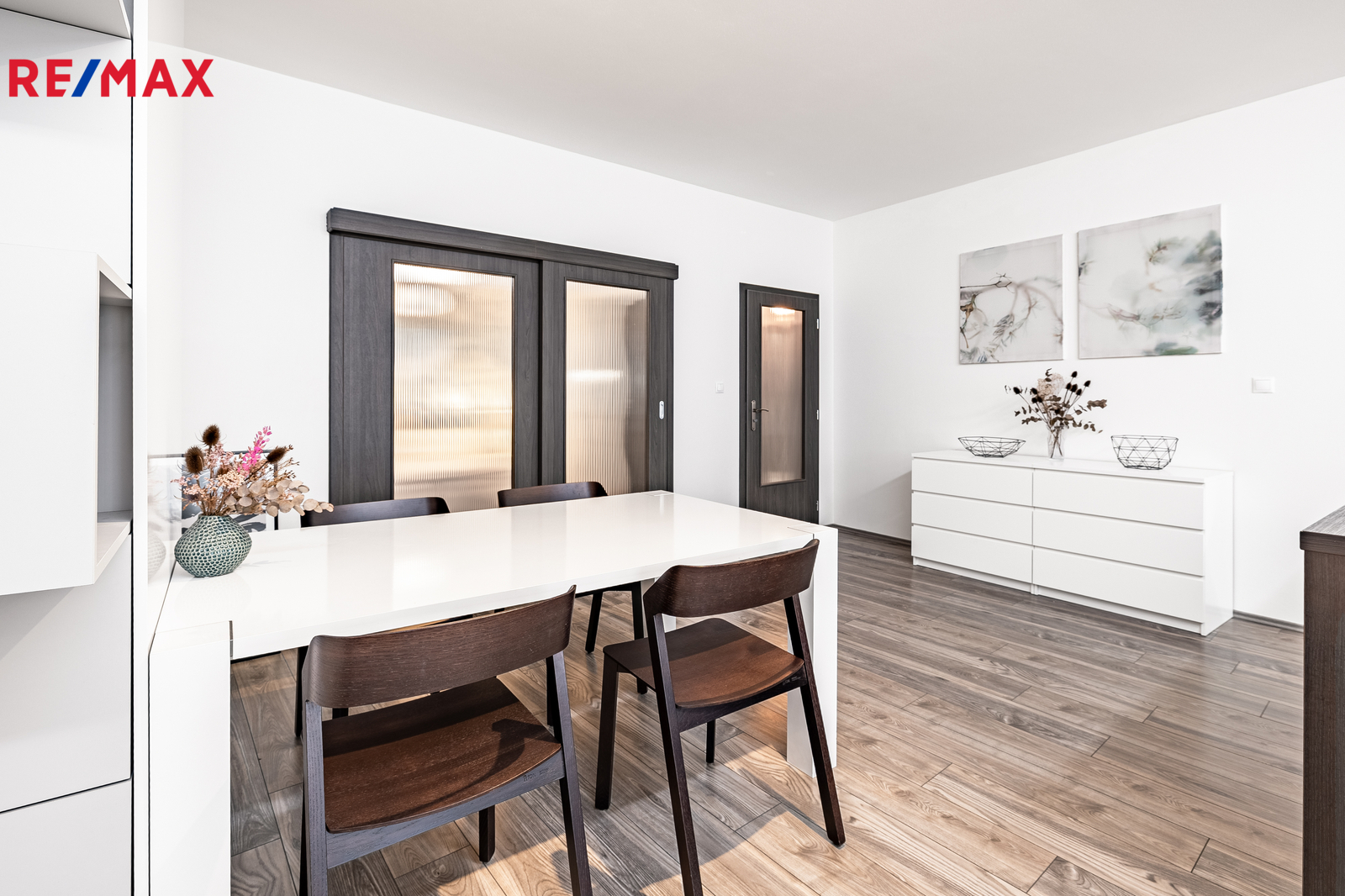Nadstandardní světlý byt o dispozici 3+1 a celkové ploše 101,4 m² k dlouhodobému pronájmu. Byt disponuje prostorným balkonem o výměře 15,3 m² s výhledem do přírody. Dále se v bytě nachází prostorná komora/šatna. Koupelna s vanou a samostatné WC.