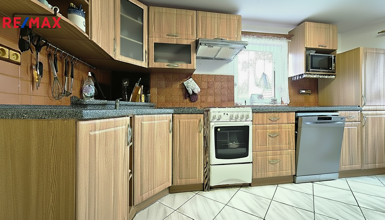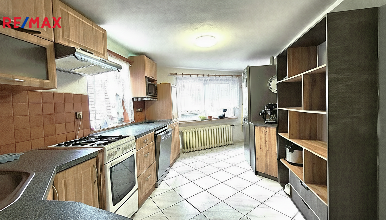 Dům je dispozičně řešen jako 3+1 s chodbou a prostornou kuchyní do tvaru L, která nabízí dostatek pracovní plochy i prostoru pro rodinný život. Kuchyňská linka byla vyrobena na míru přibližně před dvěma lety a vestavěné spotřebiče jsou součástí ceny. Na kuchyň navazuje obývací pokoj s jídelnou, což vytváří otevřený obytný prostor. Prostorná ložnice poskytuje dostatek soukromí. Díky plastovým oknům jsou místnosti světlé s výhledem do zeleně.