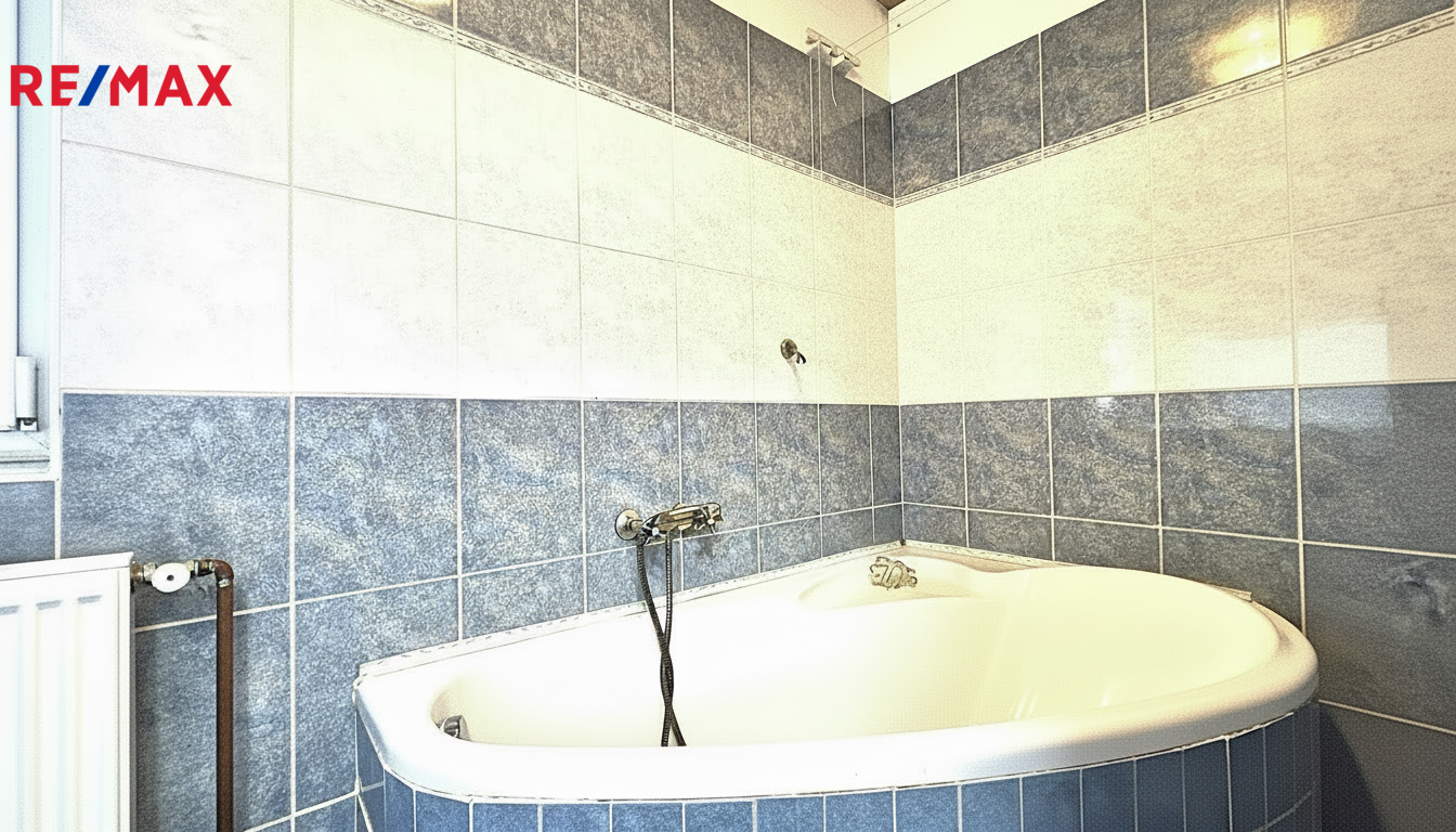 Koupelna je vybavena rohovou vanou, samostatné WC je samozřejmostí. Zadním vchodem se vstupuje na dvůr s menší terasou pro příjemné posezení. Zahrádka je pouze v bezprostředním okolí domu, což znamená minimum údržby a více času na odpočinek.