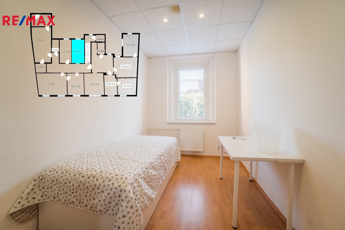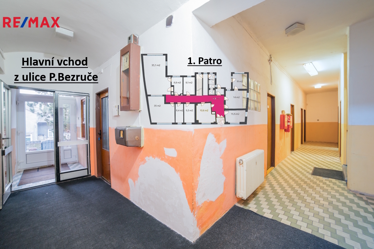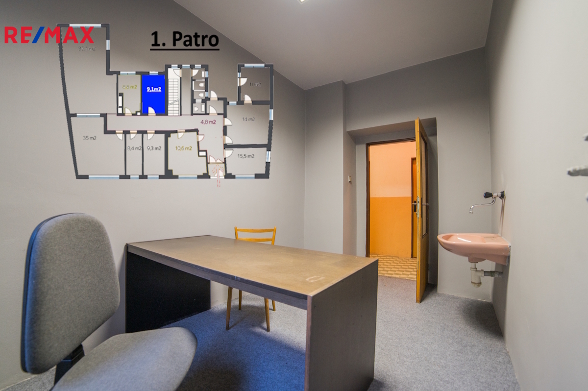 Budova disponuje třemi nadzemními podlažími s celkovou užitnou plochou přes 600 m². Dále nabízí sklepní prostory o výměře 62 m², půdu o velikosti cca 100 m² a samostatný objekt s kotelnou a technickým zázemím o ploše 56 m². Celková užitná plocha tak činí přibližně 818 m². Při kupní ceně 10,5 mil. Kč vychází cena cca 12 800 Kč/m², což představuje velmi atraktivní nabídku i v rámci lokality Bíliny.