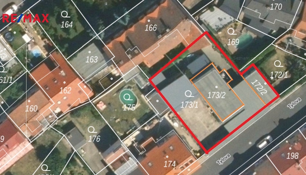 Stejný vlastník současně nabízí k prodeji také navazující venkovní areál směrem k ulici Tylova. Ten zahrnuje výrobní/skladovou halu, celkem 13 parkovacích míst (z toho 5 krytých) a samostatnou dvougaráž. Areál se rozkládá na třech parcelách o celkové výměře 515 m² a disponuje dvěma samostatnými vjezdy s automatickými vraty z ulice Tylova, dvougaráž má vlastní vjezd. Z hlavní budovy je do tohoto areálu přímý přístup zadními dveřmi ve 2. nadzemním podlaží. Vše v samostatné inzerci.