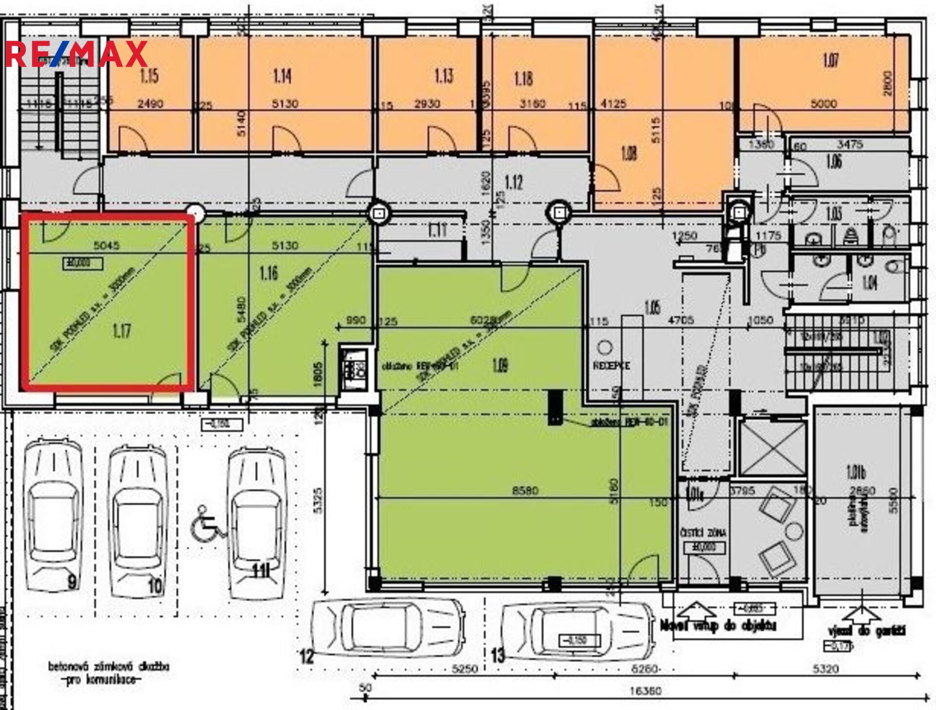 Dispozice zahrnuje prostor o rozměrech 5,5 × 4,9 m, což jej činí ideálním pro menší obchod, showroom, kancelář či provozovnu služeb. Objekt je vybaven moderním osvětlením a výtahem, nachází se zde podlahy s kobercem a dlažbou, počítačová kabeláž a přístupový systém na čipy. Internetové připojení je optickým kabelem. K dispozici je rovněž kuchyňka a toalety. Bezbariérový přístup je samozřejmostí.