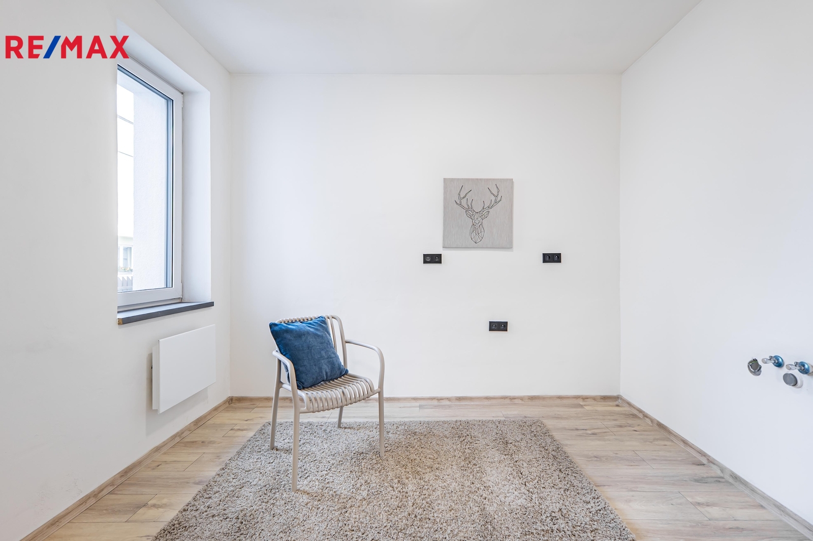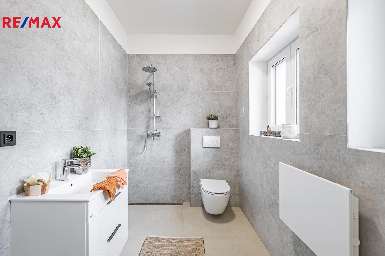 Koupelna je stylově zařízena sprchovým koutem a toaletou a jistě zde oceníte podlahové vytápění. Kuchyňská linka není zabudována, můžete si ji tedy vybrat přesně podle svých představ.