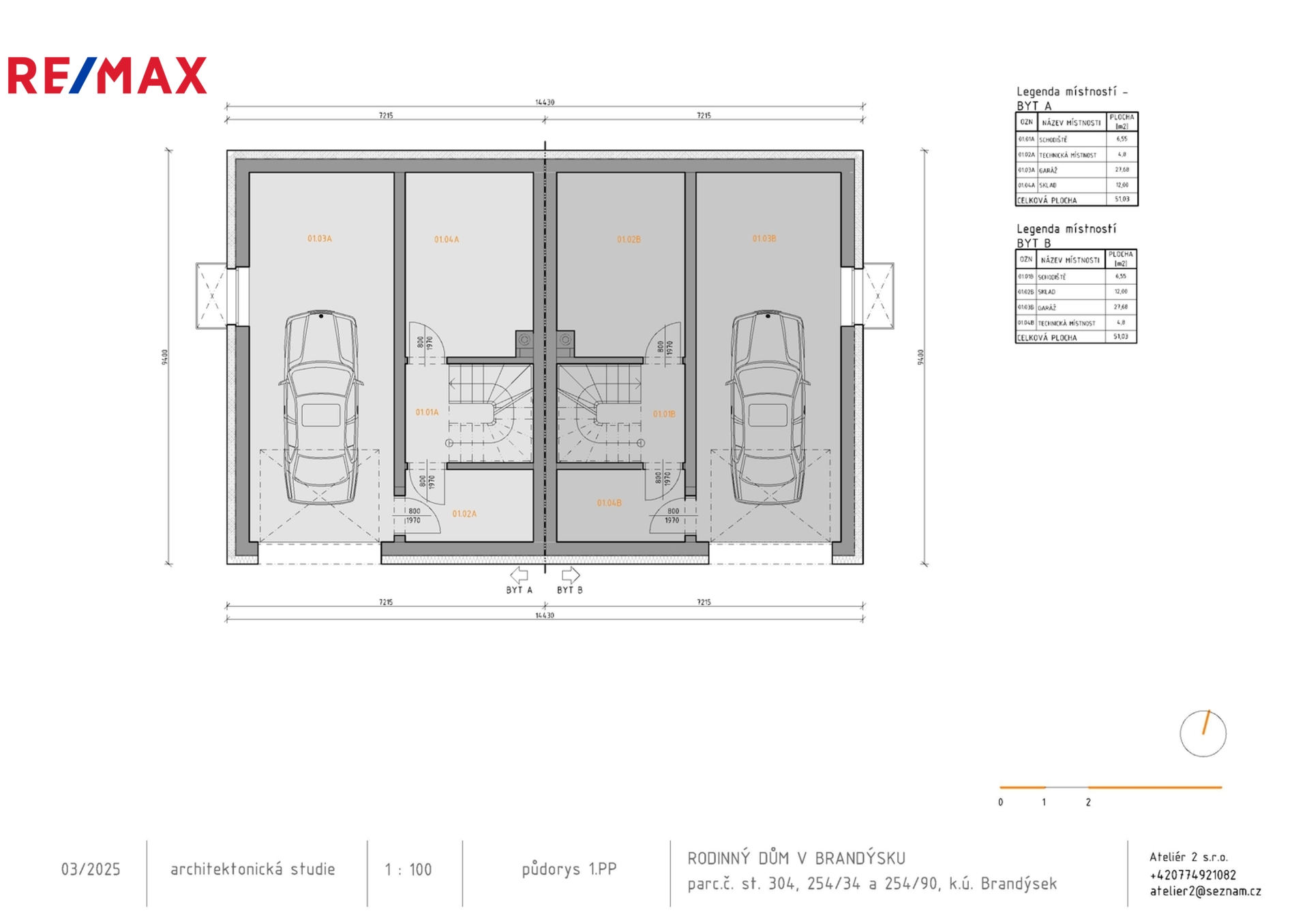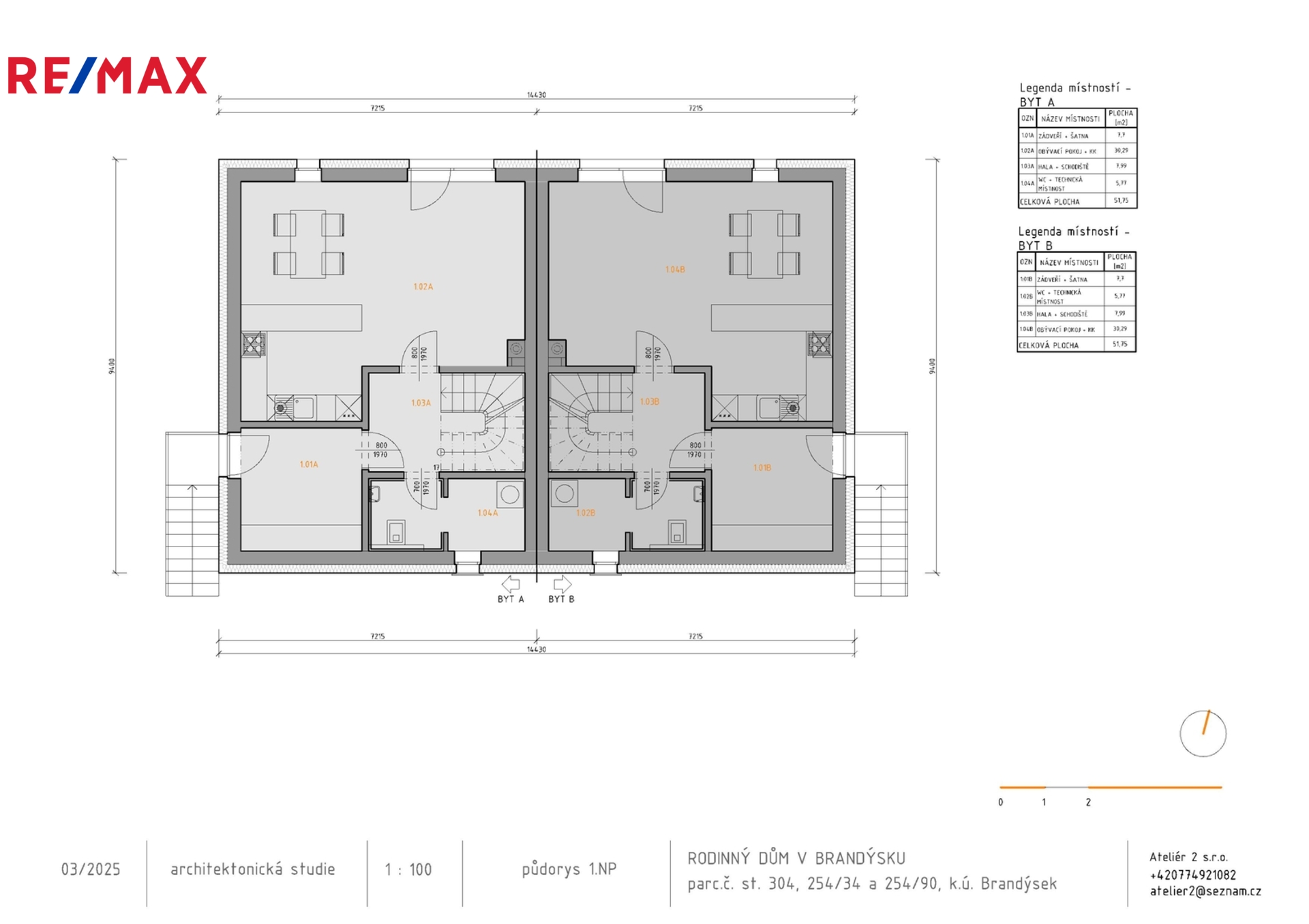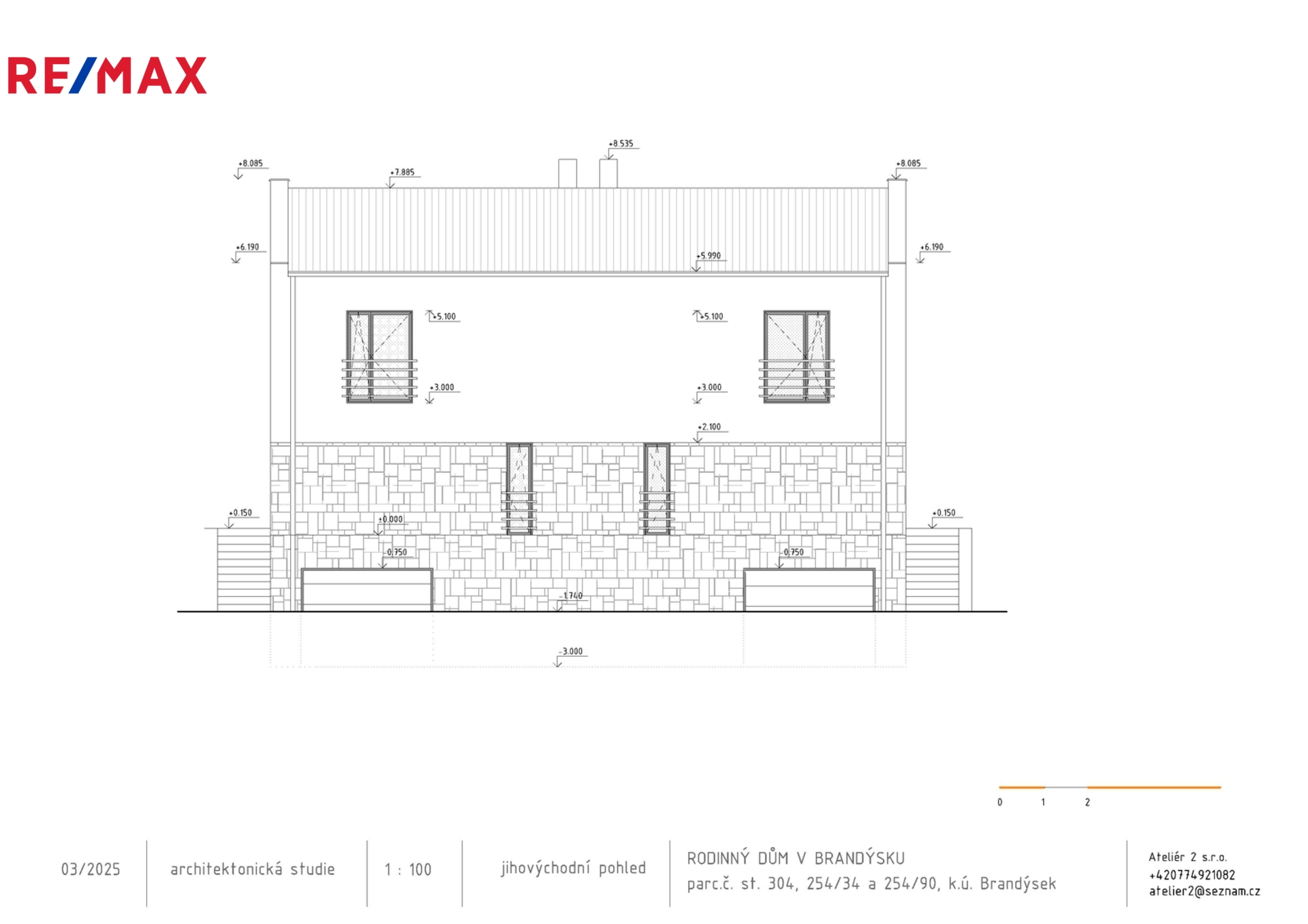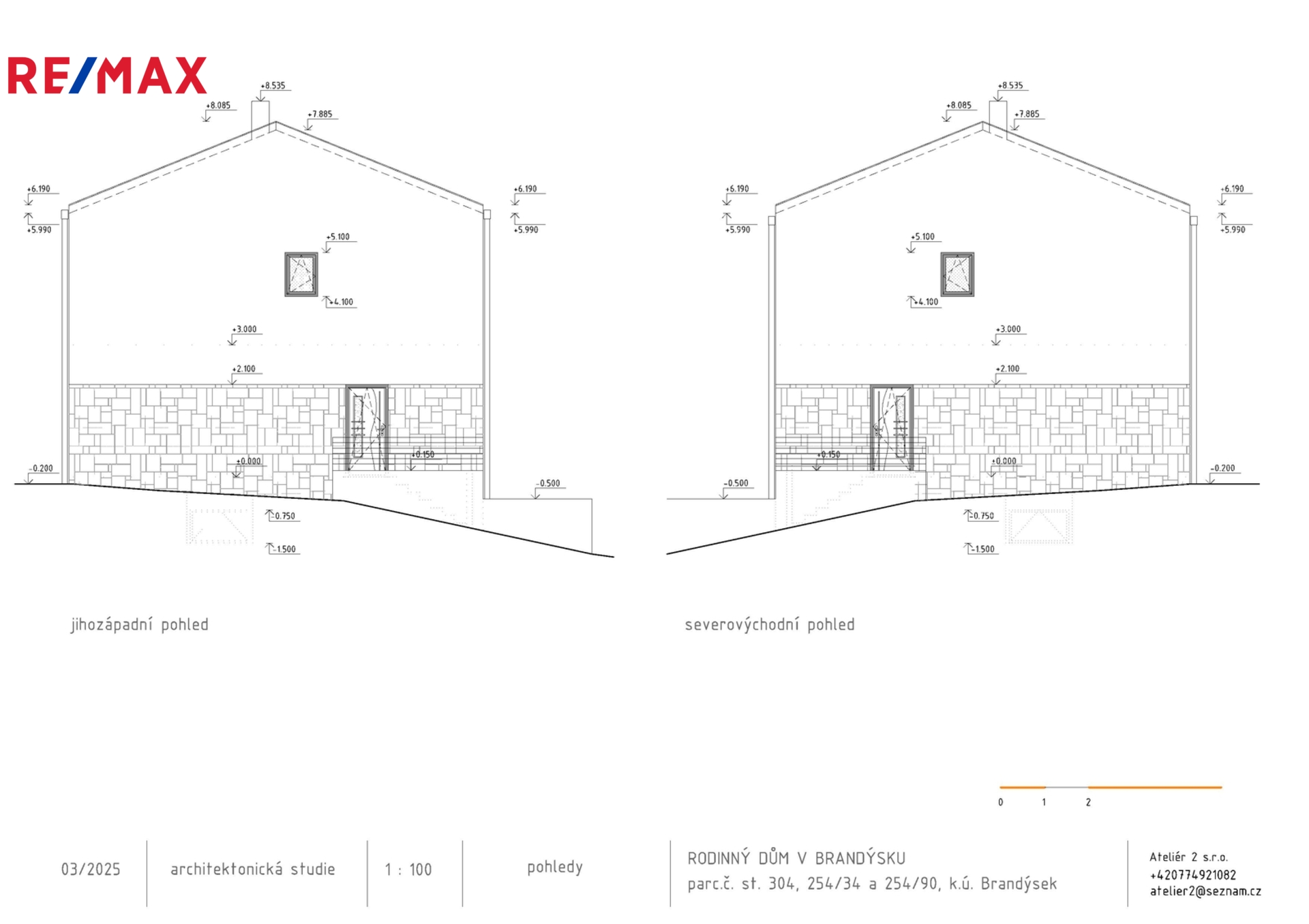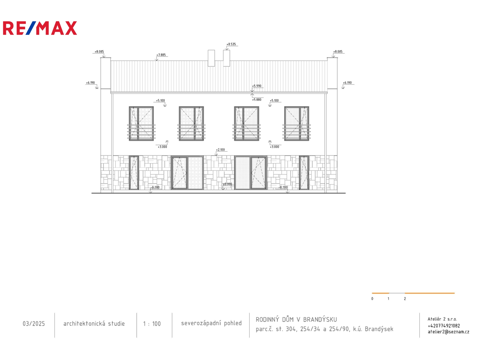 Pozemek 1.735 m2 v obci Brandýsek s návrhem domu o dvou bytových jednotkách ve fázi úředního projednání