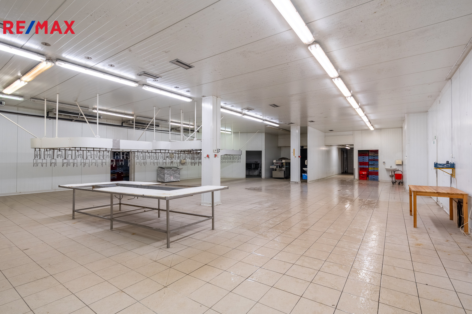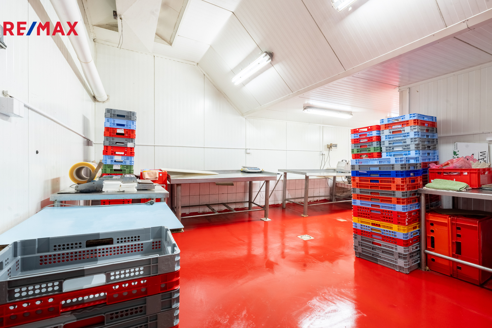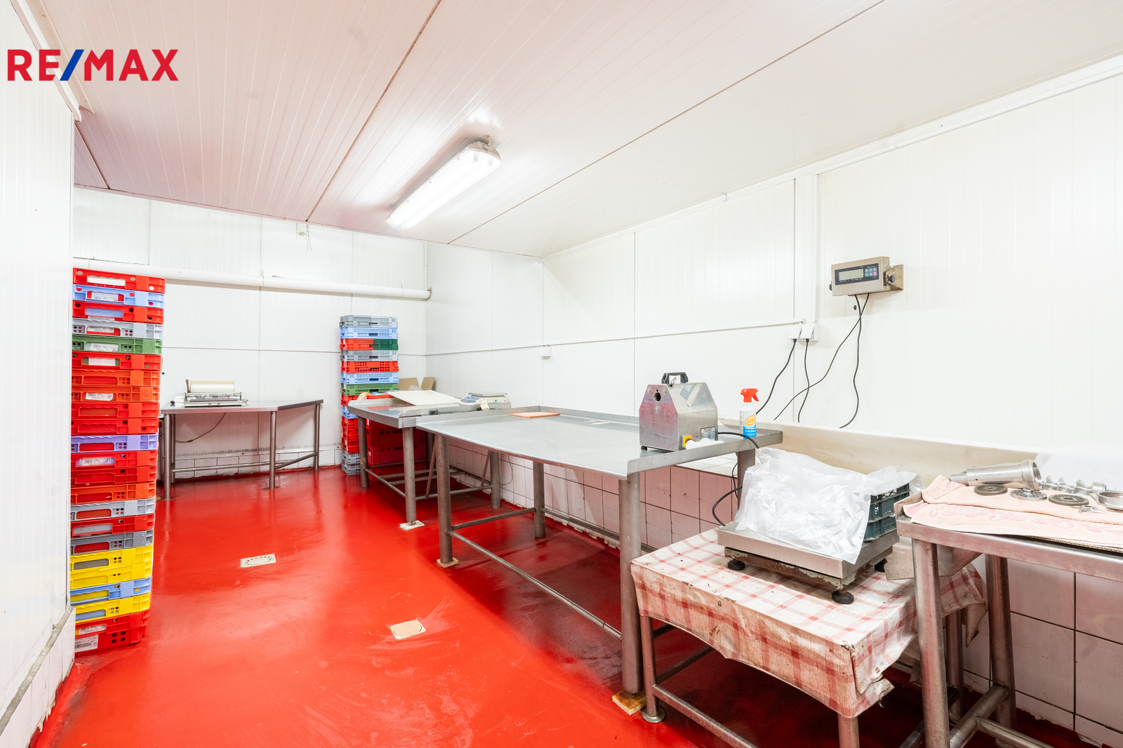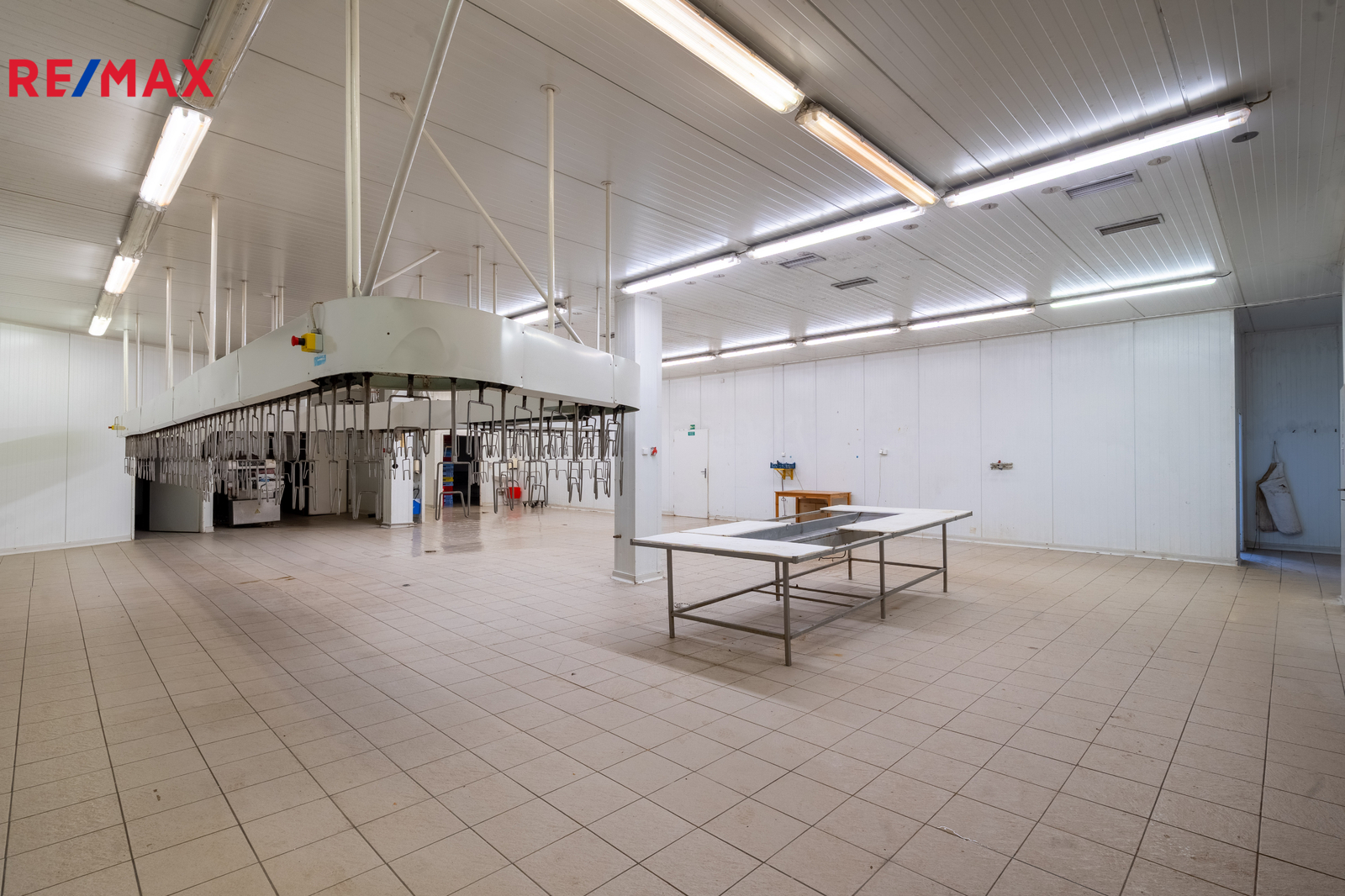 Výrobní prostory- výrobní hala se závěsnou linkou na porcování drůbeže je vybavena klimatizační jednotkou pro ohřev a výměnu vzduchu a dále chladící jednotkou. 2 x kuchyňký prostor pro vaření, sklad zeleniny, sklad čistého prádla, místnost k sušení oděvů pro zaměstnance, místnost pro odpadové hospodářství, sklad čistých přepravek, 2x mytí místnost na přřepravek, sklad obalového materiálu, sklad mistra, místnost pro značení výrobků, místnost pro ohřev vody -2 bojler na 2x1000l, příjmová chladírna, porcovna masa a z ní vede místnost pro expedici, zamražovací tunel, 2 x zamražovací kontejner s kapacitou každý na 10 palet.