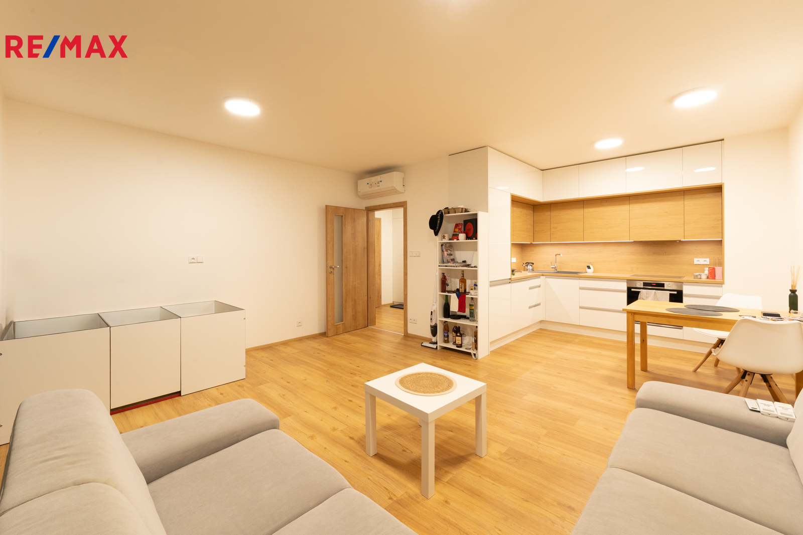 Byt je nádherně a plně zařízený, připravený k okamžitému nastěhování. Dominantou bytu je prostorný obývací pokoj s moderní kuchyní a jídelním stolem, který nabízí přímý vstup na krásnou terasu, ideální pro relaxaci i posezení s přáteli.