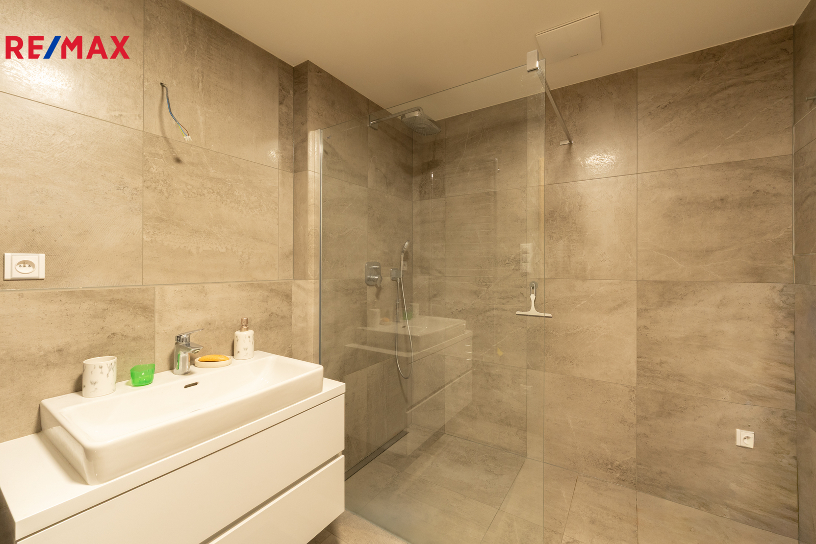 Obytné místnosti jsou vybaveny klimatizačními jednotkami, které zajišťují komfort po celý rok. Koupelna disponuje velkým sprchovým koutem a působí velmi elegantně a nadčasově.